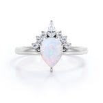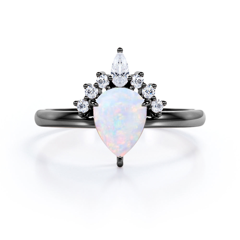 1.25 Ct Pear Cut Lab Created Opal Tiara Engagement Ring