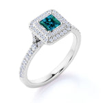 Timeless 1.65 Carat Princess Cut Lab Created Alexandrite And Diamond Double Halo Engagement Ring In White Gold. Get ready to turn some heads with our timeless double halo princess cut lab created alexandrite engagement ring. A majestic yet affordable option, this alexandrite engagement ring puts on quite a show. The sparkling double halo of white diamonds encloses a princess cut lab-created alexandrite of 1 carat. The ring's split shank is adorned with tiny round cut dazzling diamonds of 0.65 carat for even more bling. Romantic and vintage-inspired, this cluster set showpiece is handmade with deep love and attention by our well-experienced crastsmen. This timeless 1.65 carat princess cut lab created alexandrite and diamond double halo engagement ring in white gold can also be customized to 18k Gold plating over silver, 10k Gold or 14k Gold or 18k Gold as per your choice. So grab it now and be that royal bride to be.
