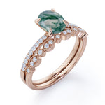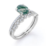 With its very quirky mossy inclusions, this Timeless 4 Prong Solitaire 1.50 Carat Oval Cut Opaque White Mossy Green Agate and Diamond Art Deco Band Wedding Ring Sets will perfectly fit your unique love story. This classic ring features 1 carat oval cut real moss green agate and .50 carat real side diamond for gold ring and moissanite for silver ring. This elegant bridal set rings can be customized to either 10k, 14K and Gold over Silver and either Black Gold, Rose Gold, White Gold or Yellow Gold. Also, as your satisfaction is our most priority, we will do our best to have your handmade jewelry be carefully and beautifully crafted by our expert jewelers. The order also comes with a 30-day full refund policy. This green colored minerals with banded inclusions ring will surely be a perfect gift for your special someone. It is crowned as a crystal of gardeners and agriculture. Encourage trust and hope with this real green Agate ring that shows a variety of white with green inclusions that resembles moss. Due to its unique milky white color with green dendritic inclusions, this vintage moss green Agate ring is sure to enchant its wearer. With its long history and many oral traditions around the world, this delicate druzy moss green Agate ring is sure to be eye-catching and bring all eyes on you. This ring is available at a very affordable price and available in both silver and gold ring. It perfectly fit those who are looking for a very unique ring that no two rings are alike. Crowned as a stone of power and wealth, this green Agate with mossy inclusions ring will attract abundance in all forms. Those who has a penchant for vintage and flawless ring would completely fall in love with this ring. It is the perfect match for those who are looking for a remarkable gemstone rings as moss green Agate embodies their own unique intriguing patterns and uplifting meaning.
