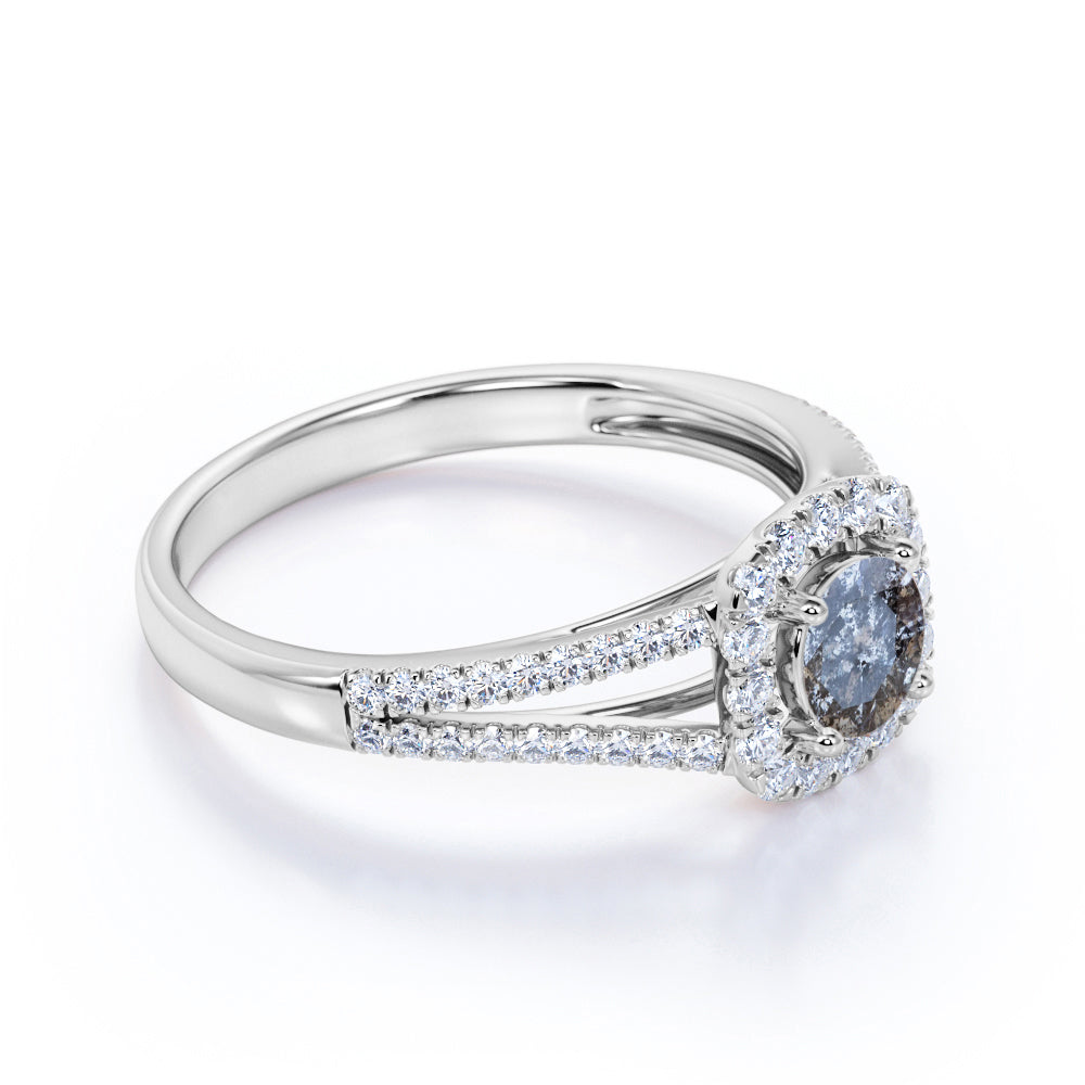 1.25 Ct Round Salt and Pepper Diamond Split Shank Engagement Ring