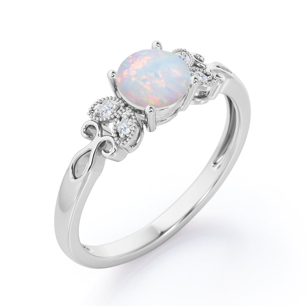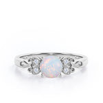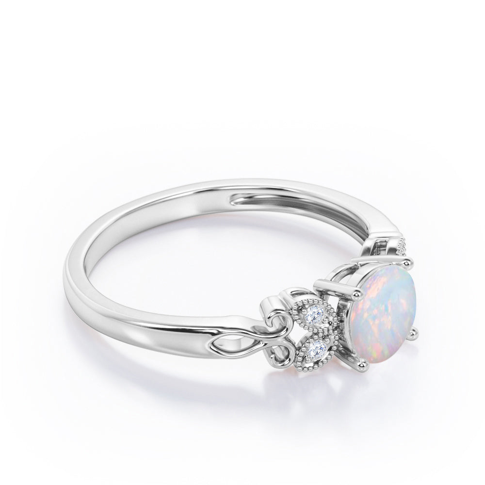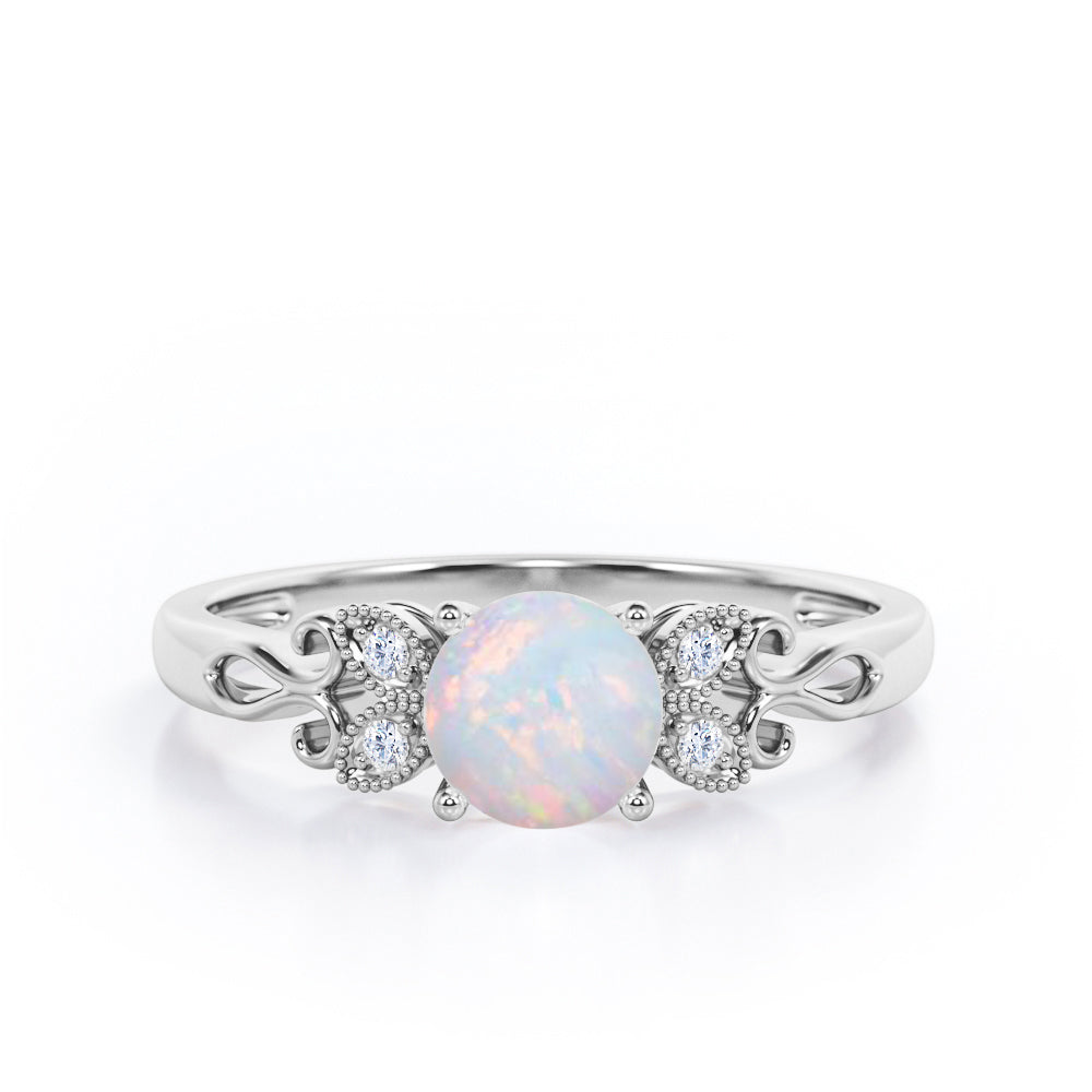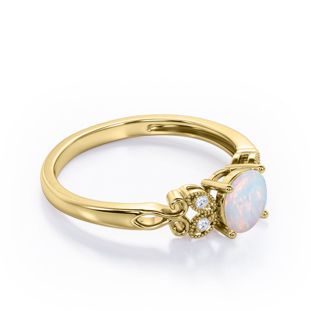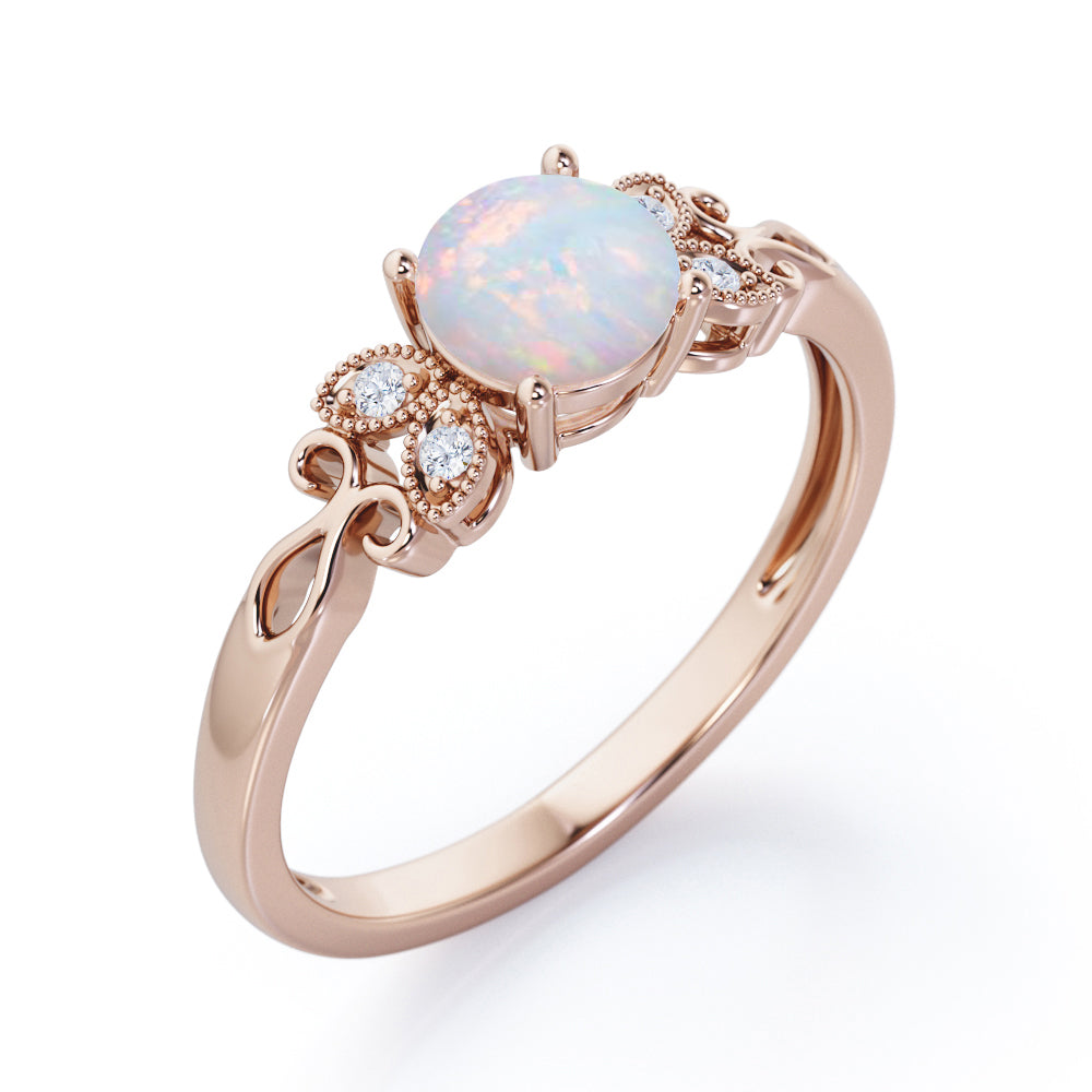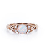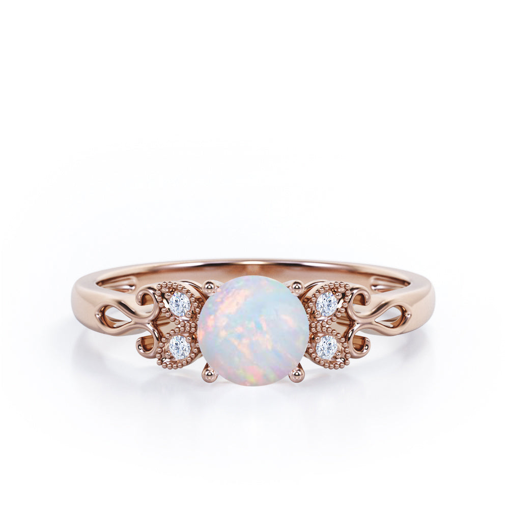 Tiny Butterfly 0.5 carat Round Opal and Diamond Vintage Engagement Ring in Rose Gold