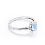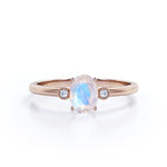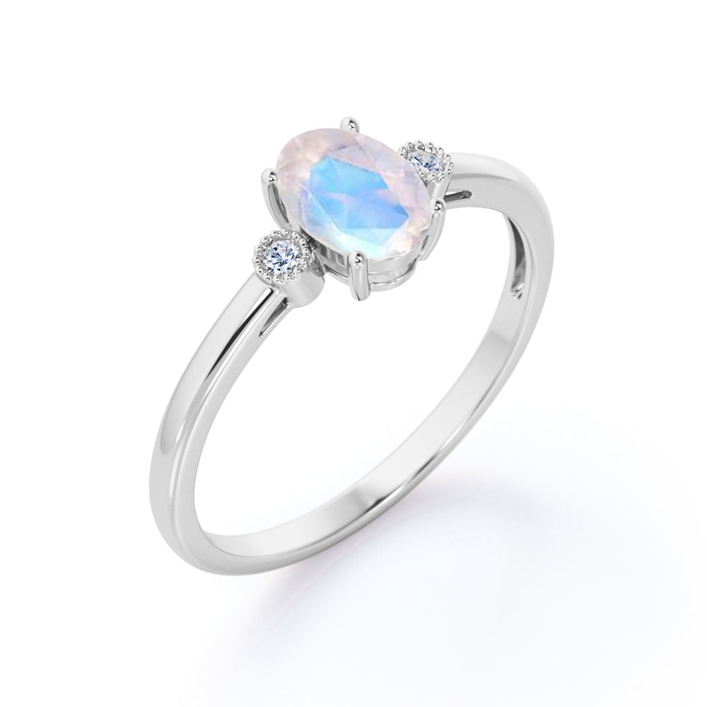 1.25 Carat Oval Moonstone and Diamond Wedding Ring in White Gold - Blue Moonstone Ring