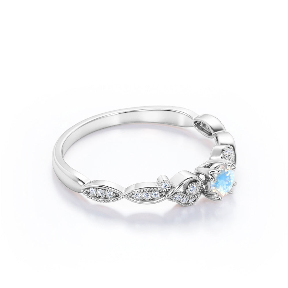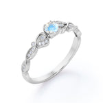 1.10 Carat Round Cut Rainbow Moonstone Ring with Authentic Diamond in White Gold - Lovely Dainty Engagement Ring