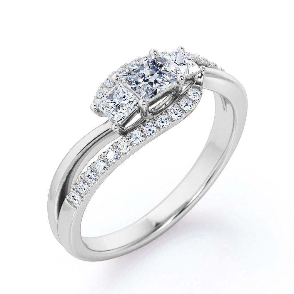 With this Triple Stone - 0.5 TCW Princess Cut Diamond - Tension Pave Split Shank Engagement Ring - 10K White Gold, you can make your proposal day unforgettable. Handcrafted with care into a wonderful princess cut by our most talented jewelers, this affordable real diamond engagement ring integrates total 0.50 carat diamond on solid white gold. For those looking for something a little out of the ordinary, this affordable engagement ring is ideal for those who wish to express their charisma and uniqueness. with its dazzling beauty, this cheap diamond engagement ring will accentuate any outfit the wearer chooses to put on. Beautiful and affordable, this real diamond engagement ring is stunning and inexpensive, thanks to its reasonable price. If you are looking for a diamond ring for any special event, such as a birthday, an engagement, or a marriage proposal, this diamond engagement ring for women a great choice. Also, this diamond wedding ring can be customized, so customers can choose one of metal colors between 10K white gold, 10K rose gold, 10K yellow gold, and 10K black gold. Let's show her how much you care by giving her this real diamond wedding ring.