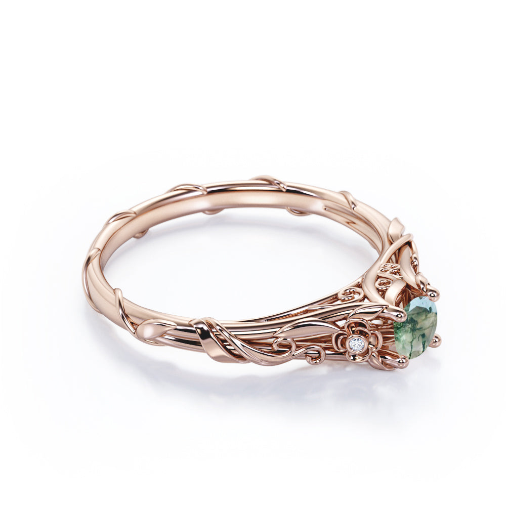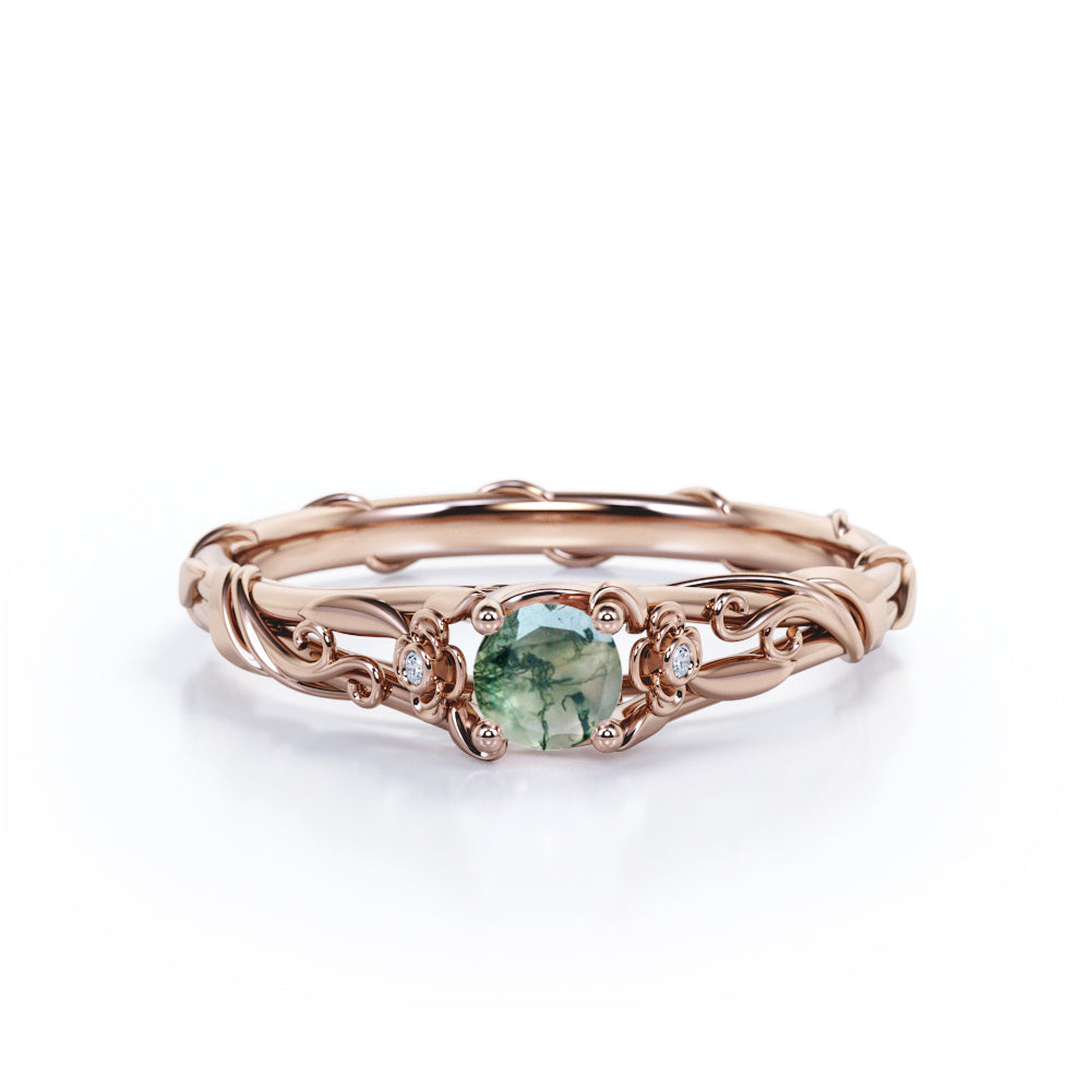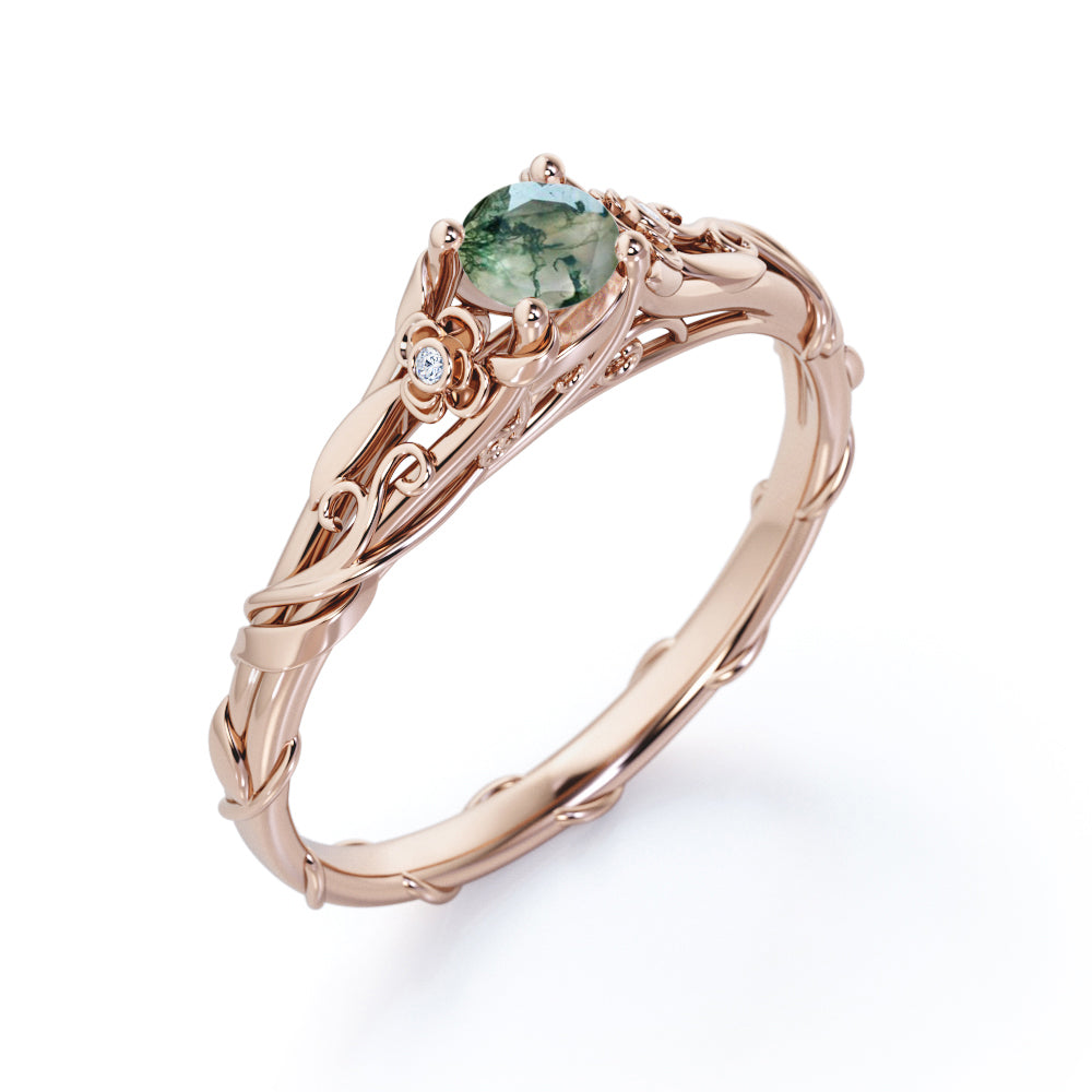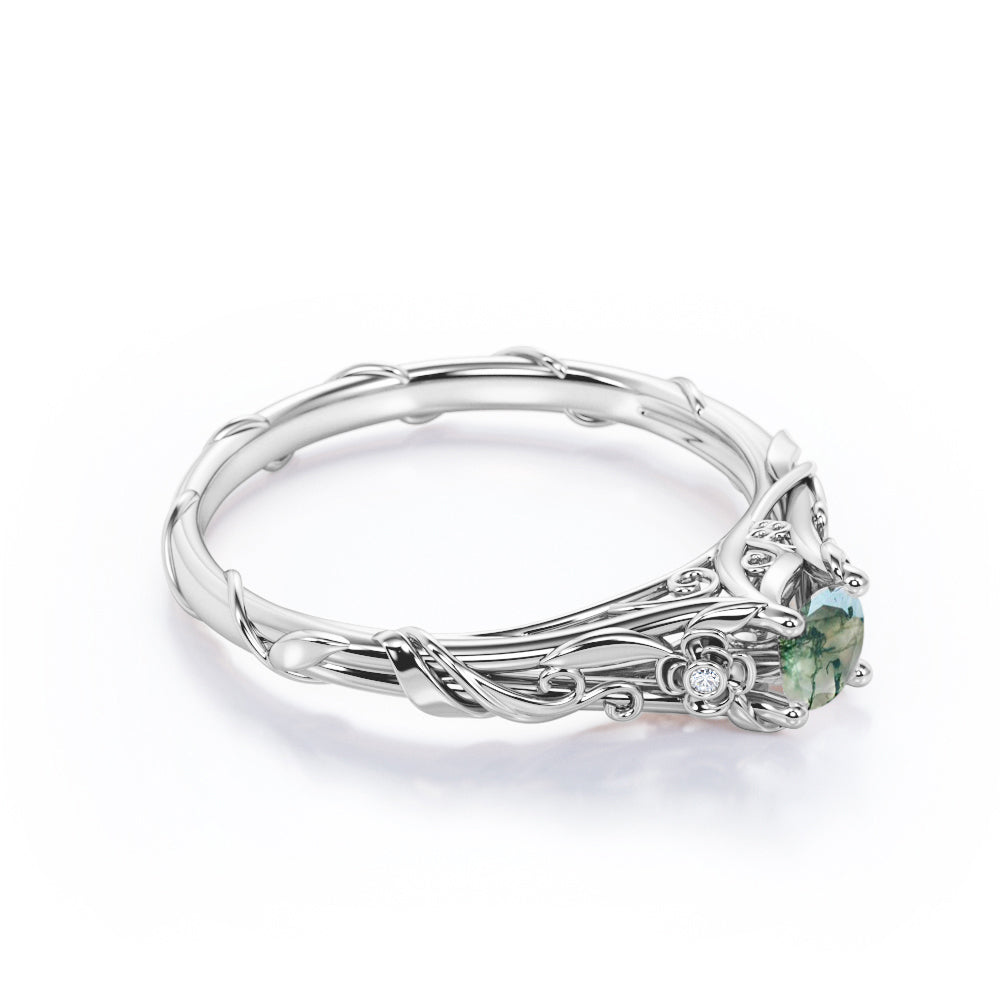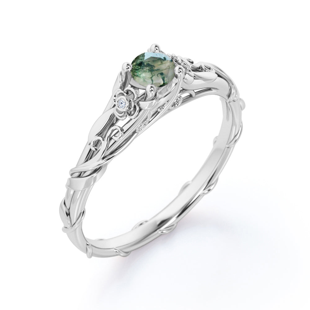 Twig 0.5 Ct Round Cut Green Moss Agate Engagement Ring