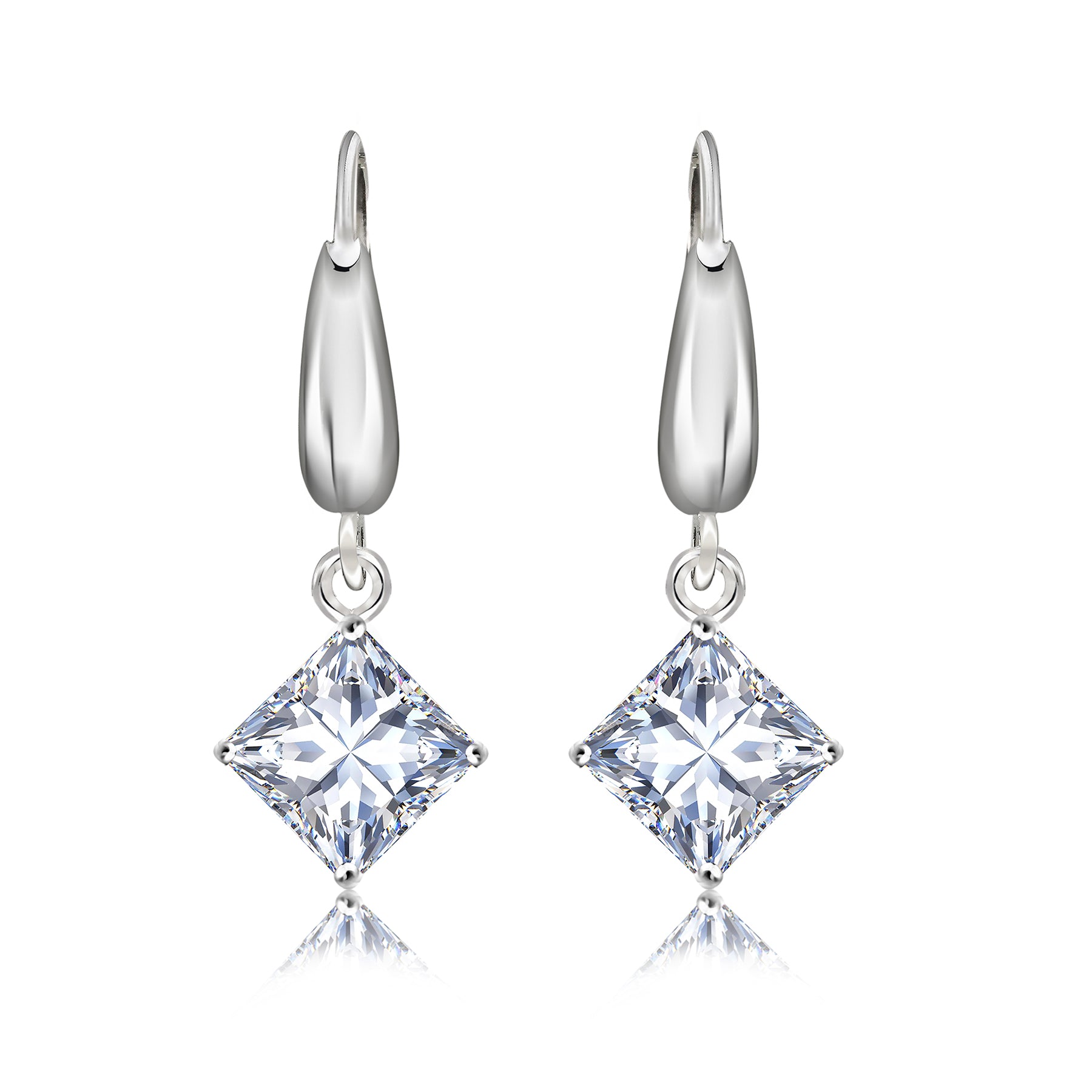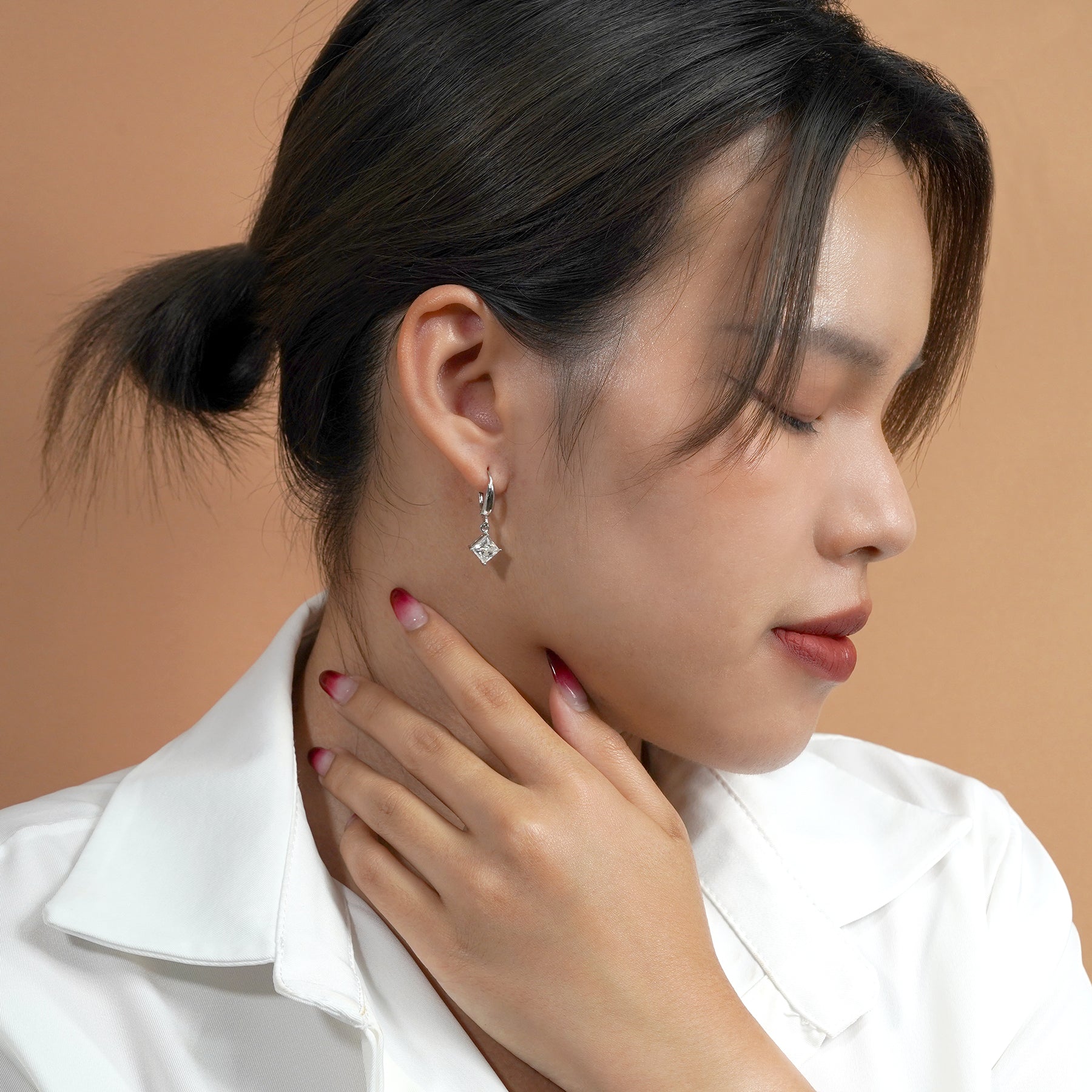 Illuminate your style with the captivating beauty of the Twinkling 2.5 Carat Princess Cut Star Dangle Earrings in 18K White Gold over Silver. These extraordinary dangle star earrings feature an astronomical-inspired design, combining the enchanting allure of stars with the timeless elegance of princess cut moissanite. Crafted to perfection, these star dangle earrings are sure to capture attention wherever you go. This princess cut moissanite earrings feature stunning 2.5 carat princess cut moissanite in total, meticulously cut to bring out its maximum sparkle. Further grace is added to the unique dangle earrings with the lustrous shine of genuine 925 sterling silver while elevating the overall aesthetic of the star drop earrings silver. With their comfortable fit and secure back, these leverback earrings can offer you a comfortable fit and easy wear. From a romantic dinner date to a birthday party, these 2.5 carat moissanite earrings are versatile enough to complement any outfit. Whether you're attending a glamorous event or adding a touch of celestial beauty to your casual attire, these pretty dangling earrings are the perfect choice. Let these silver dangle earrings and their radiant sparkle be a reflection of your individuality and style. With their appeal and celestial-inspired charm, these dangling earrings are sure to become a treasured addition to your jewelry collection.