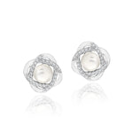 Twirling Flower and Pearl Stud Earrings for Women in Silver
