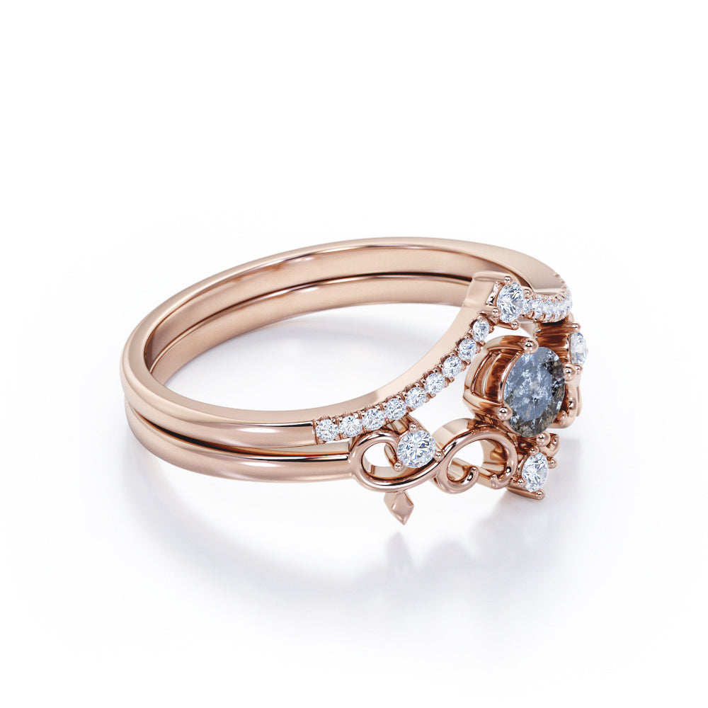 Tiara 0.85 Cat Round Salt and Pepper Diamond Bridal Set