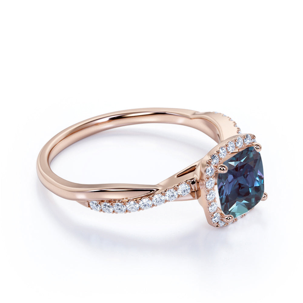 1.50 Ct Cushion Lab Alexandrite Halo Engagement Ring