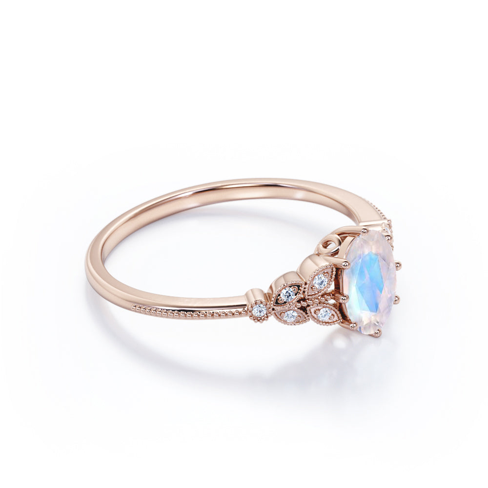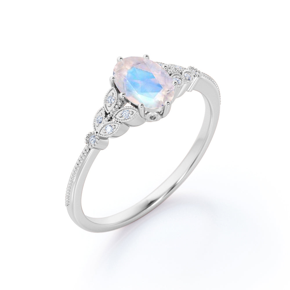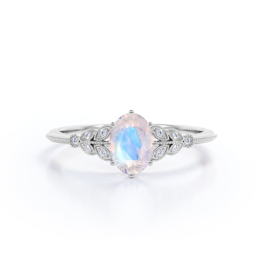 Vintage Leaf 0.85 ct Oval Moonstone Engagement Ring