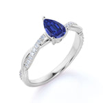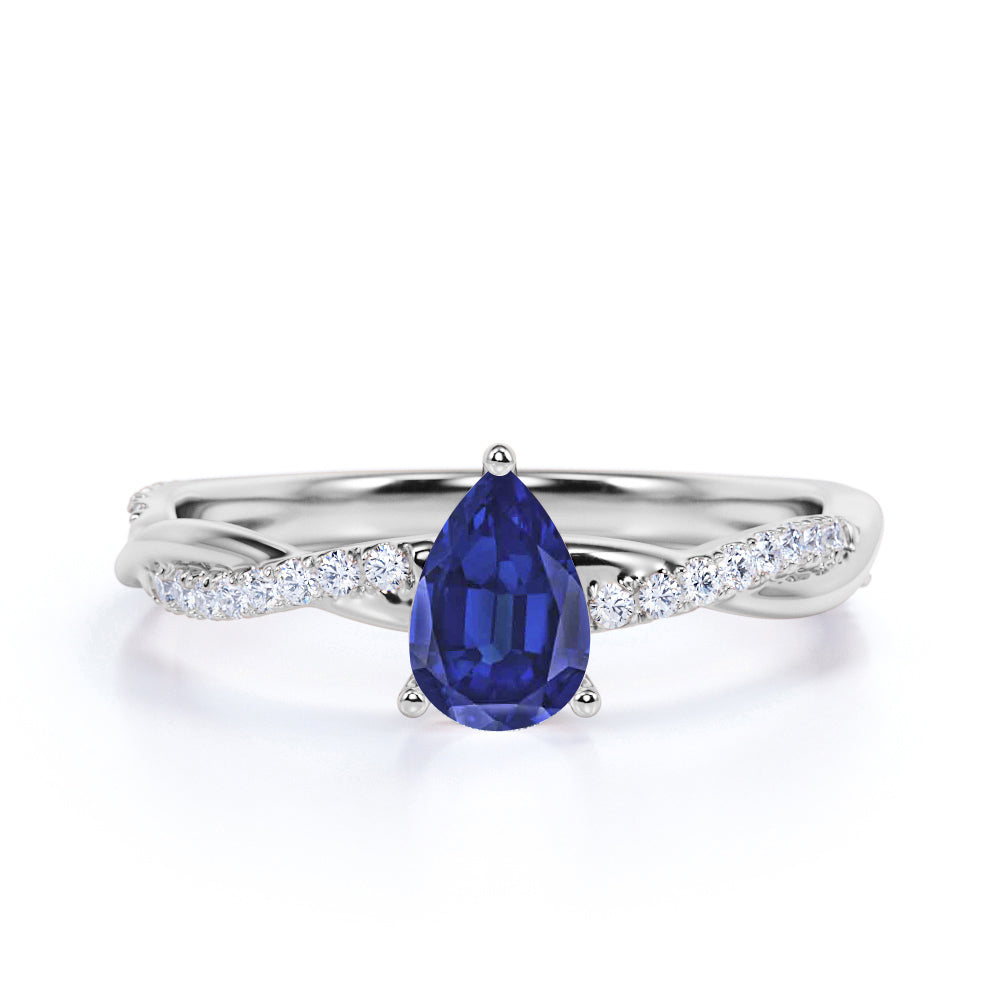 The wait is over for those women who are tired of those crazy details which is not necessary for your engagement ring, this minimal blue Lab-Created sapphire ring is the best for you. This affordable blue Lab-Created sapphire ring is the best for you, not just by the look but the price and quality as well. This blue Lab-Created sapphire ring features an approximately 1 carat teardrop cut Lab-Created blue sapphire, surrounded by 0.15 carat authentic diamond accent, for a total weight of 1.15 carats.