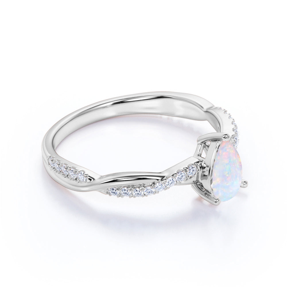 Infinity 0.75 Ct Pear Cut Lab Created Opal Engagement Ring