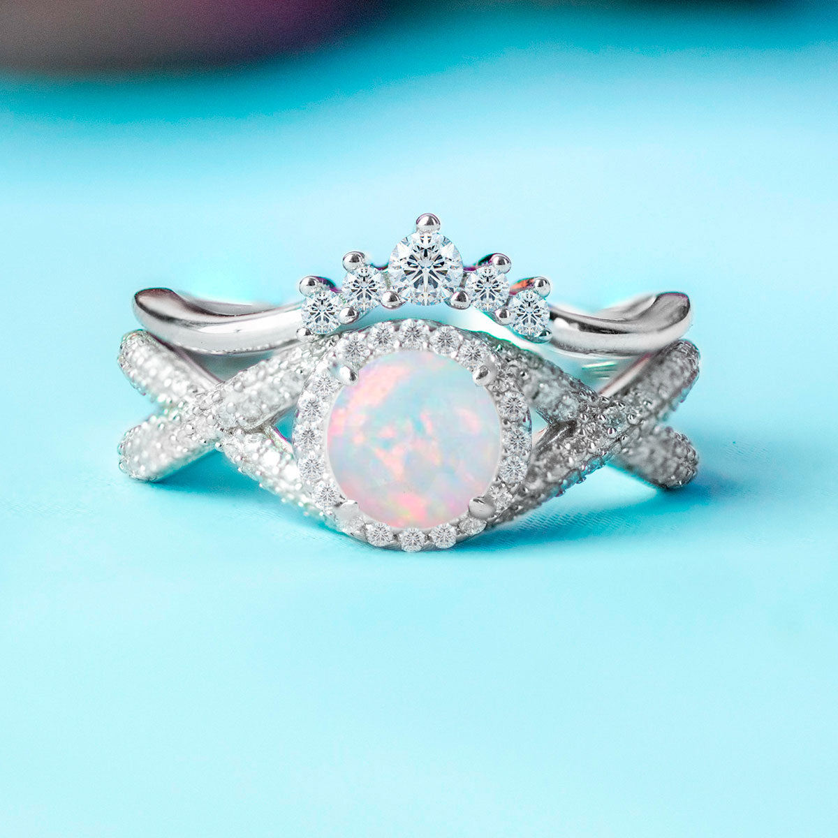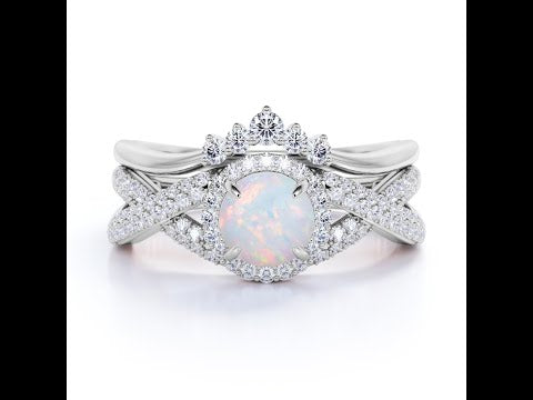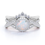 Twisted 1.50 Ct Round Cut Lab Created Opal Wedding Ring Set