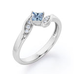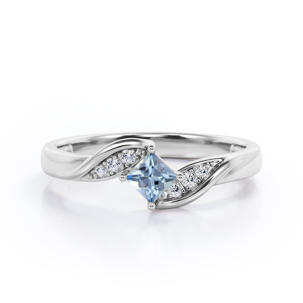 Twisted 7 Stone Ring - 0.55 carat Princess Aquamarine and Moissanite Elegant Engagement Ring in White Gold