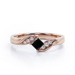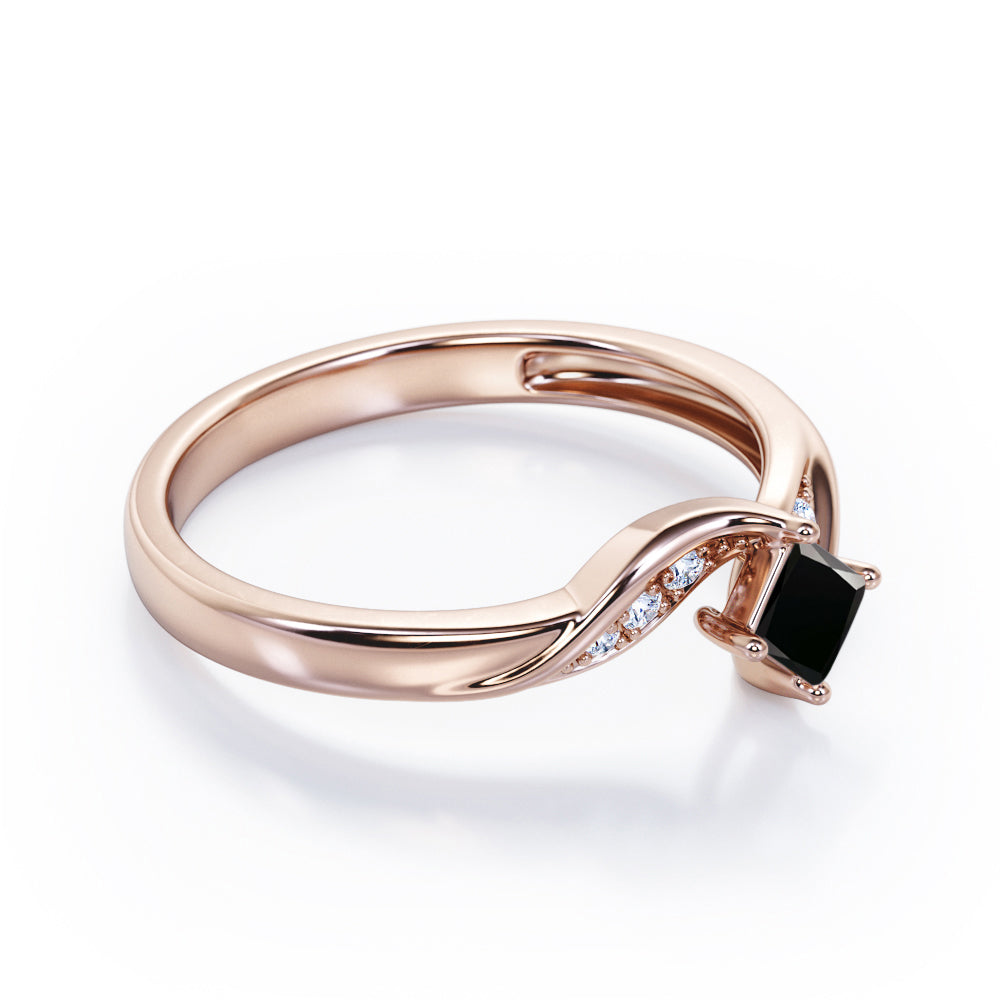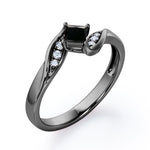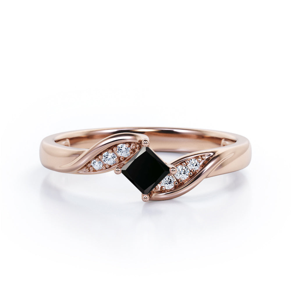 Twisted 7 Stone Ring - 0.55 carat Princess Black Diamond Elegant Engagement Ring in Rose Gold