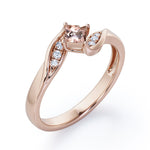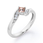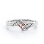 With 7 is believed to be a lucky number, this Twisted 7 Stone Ring - 0.55 carat Princess Moissanite and Diamond Elegant Engagement Ring in Rose Gold can be another good option to be a meaningful gift to your lover. The promise ring possesses a 0.5 carat princess cut Morganite along with three round Moissanite on each side of the band. Its shank is twisted and made parallel to each other, complementing the center stone very well. This classic Moissanite ring can be made in 18k gold over silver, 10k gold and 14k gold with the color of white gold, rose gold, yellow gold and black gold.