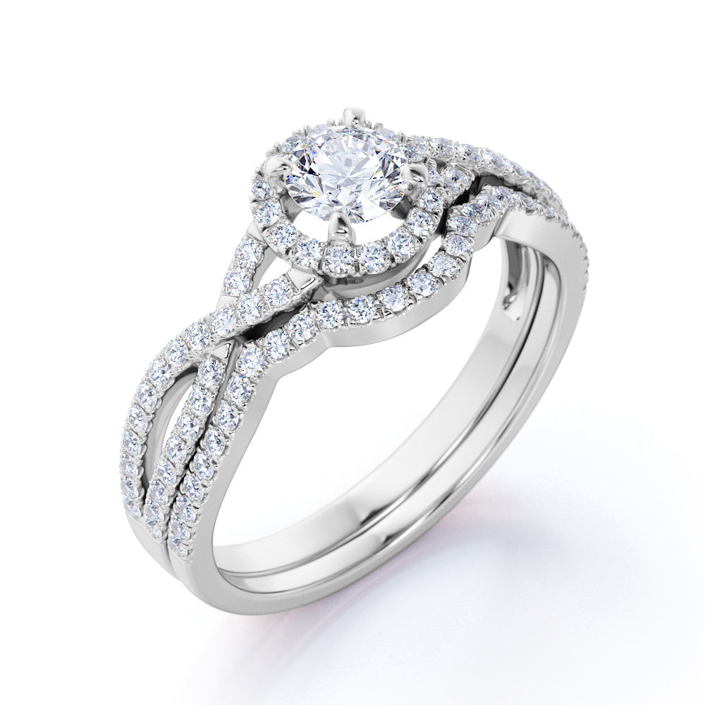 Twisted 1.75 Carat Round Moissanite Halo Bridal Set