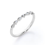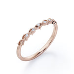 Calm your soul with this Twisted Thorn - 0.05 TCW Round Shape Diamond - Double Prong Wedding Band. Handcrafted with care into a wonderful round cut by our lapidary expertise, this wonderful diamond wedding band for women combines total 0.05 carat diamond. For those looking for something a little out of the ordinary, this diamond wedding band for women is an excellent choice. This diamond wedding band for women will accentuate any outfit the wearer chooses to put on. This affordable diamond wedding band is a great choice for any woman's jewelry collection. If you are looking for a diamond ring for any special event, such as a birthday, an engagement, or a marriage proposal, this diamond wedding band for women, the birthstone ring for April, symbolically represents love and dedication, is the best gift you can give to your significant other. This wedding band can be customized in 18K white, rose, yellow, or black gold over silver, or in 10K, 14K, and 18K gold, based on your preference.