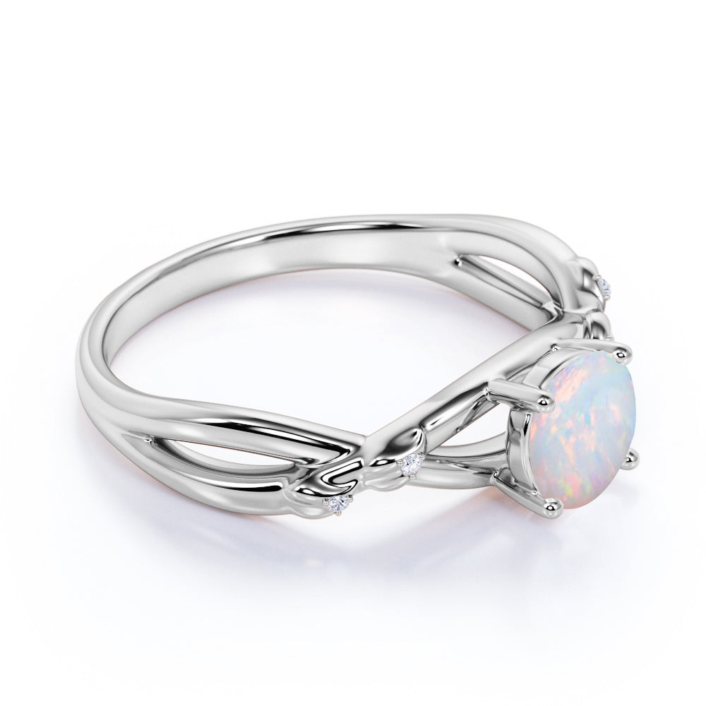 Twisted 1.10 Ct Round Cut Lab Created Opal Engagement Ring