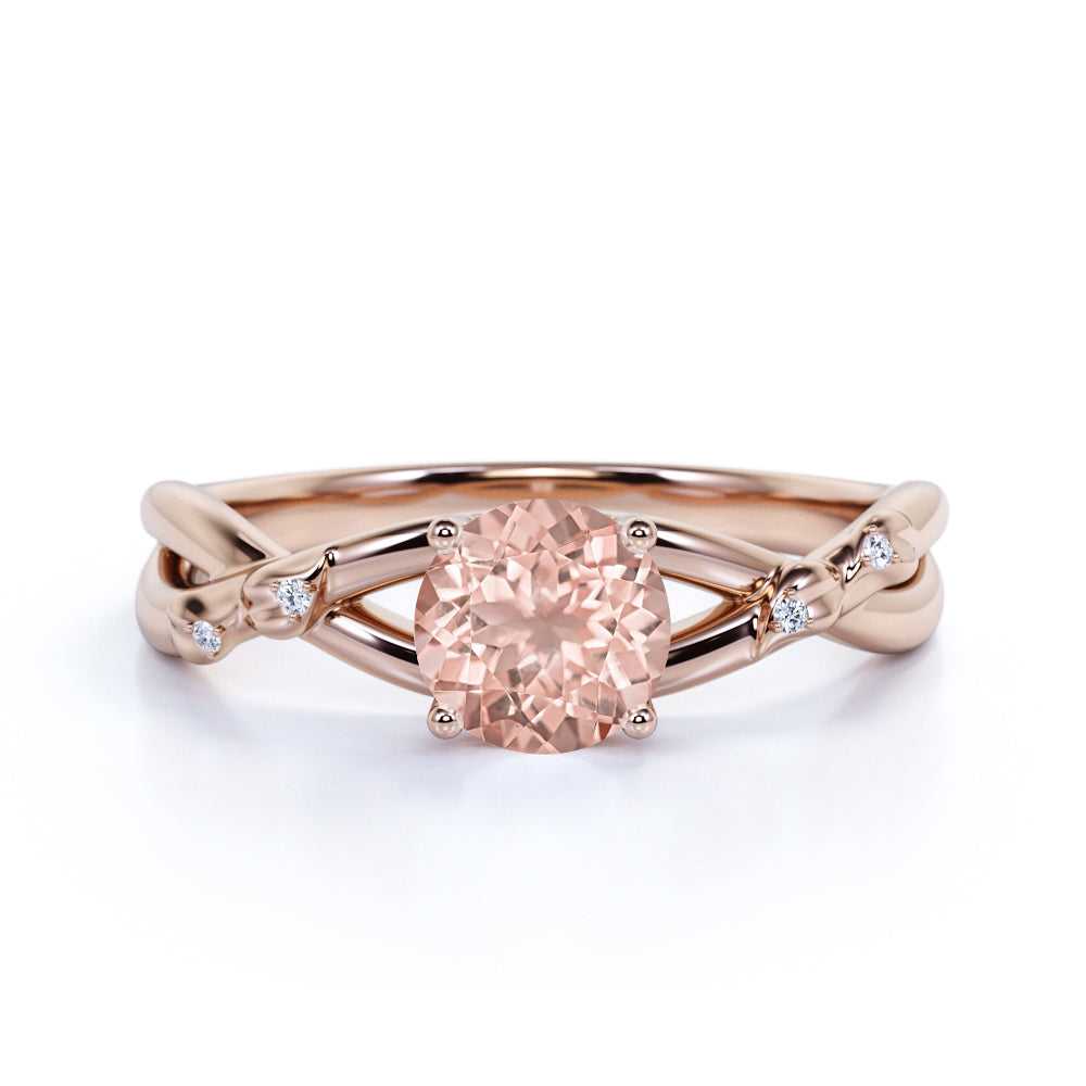 Twisted Twig 1.20 Carat Round Peach Morganite and Diamond Infinity Engagement Ring in Rose Gold