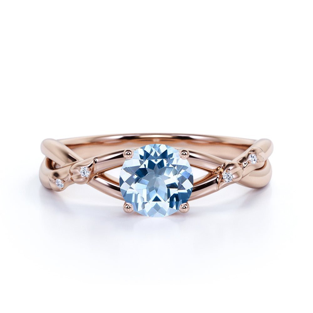 Twisted Twig 1.10 ct Round Aquamarine Infinity Engagement Ring