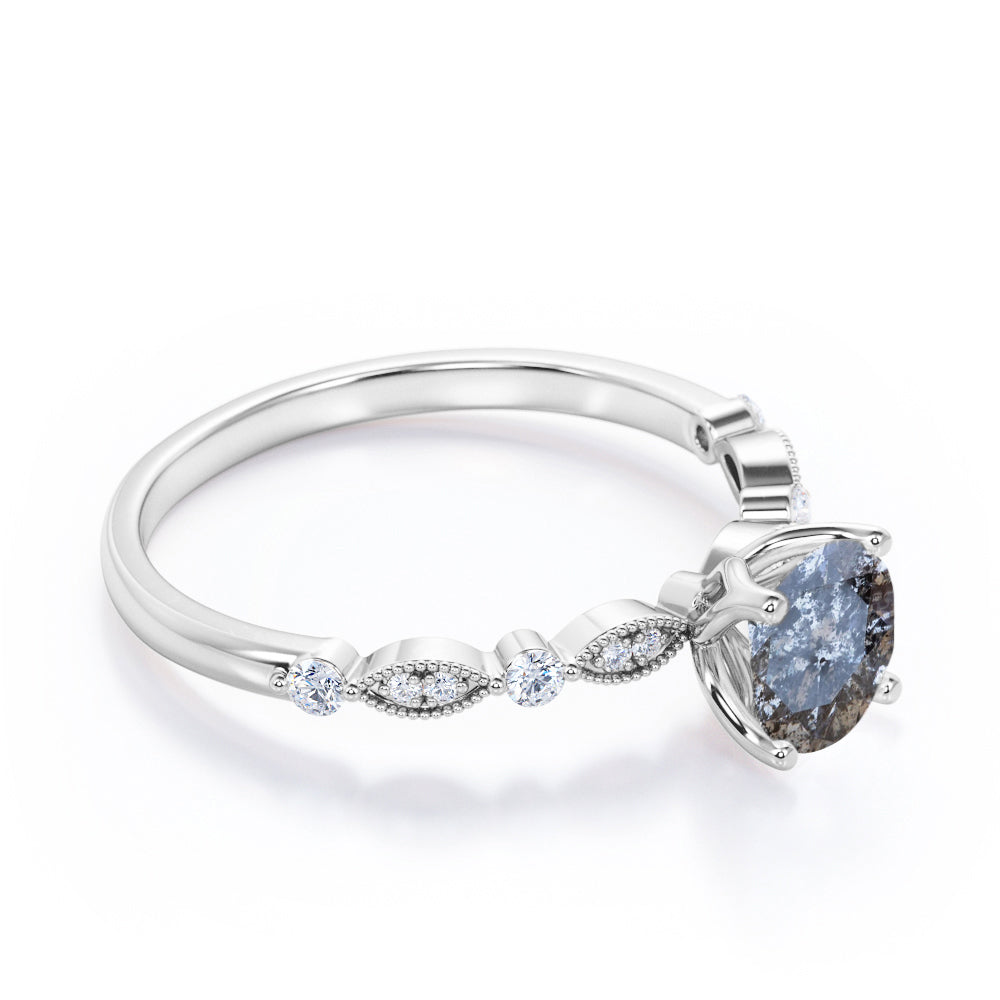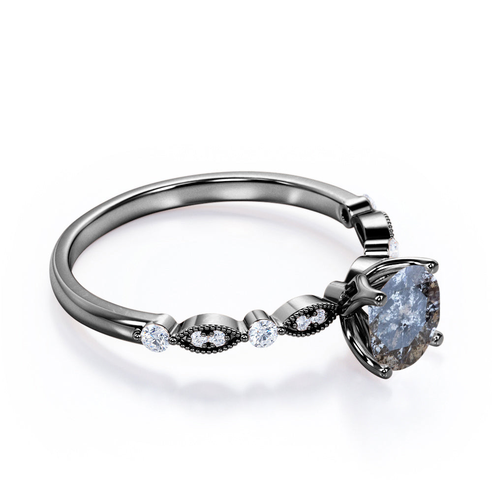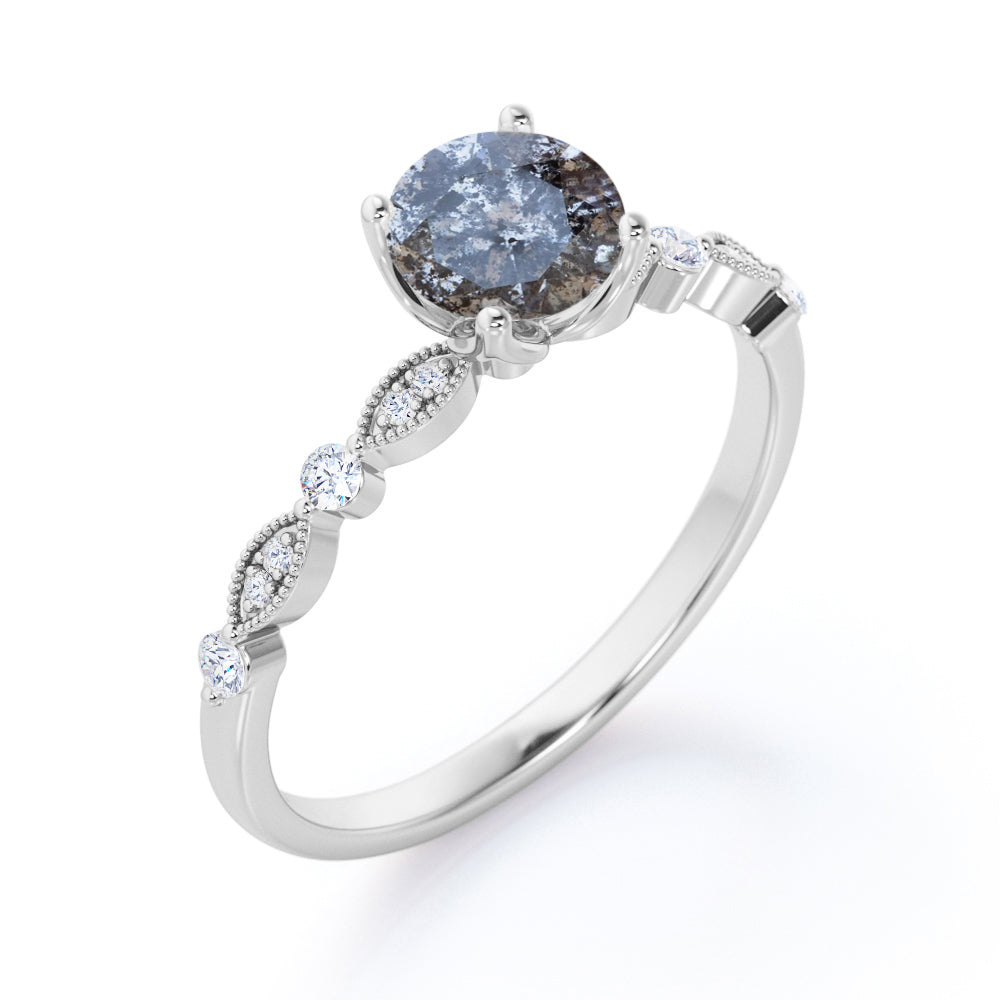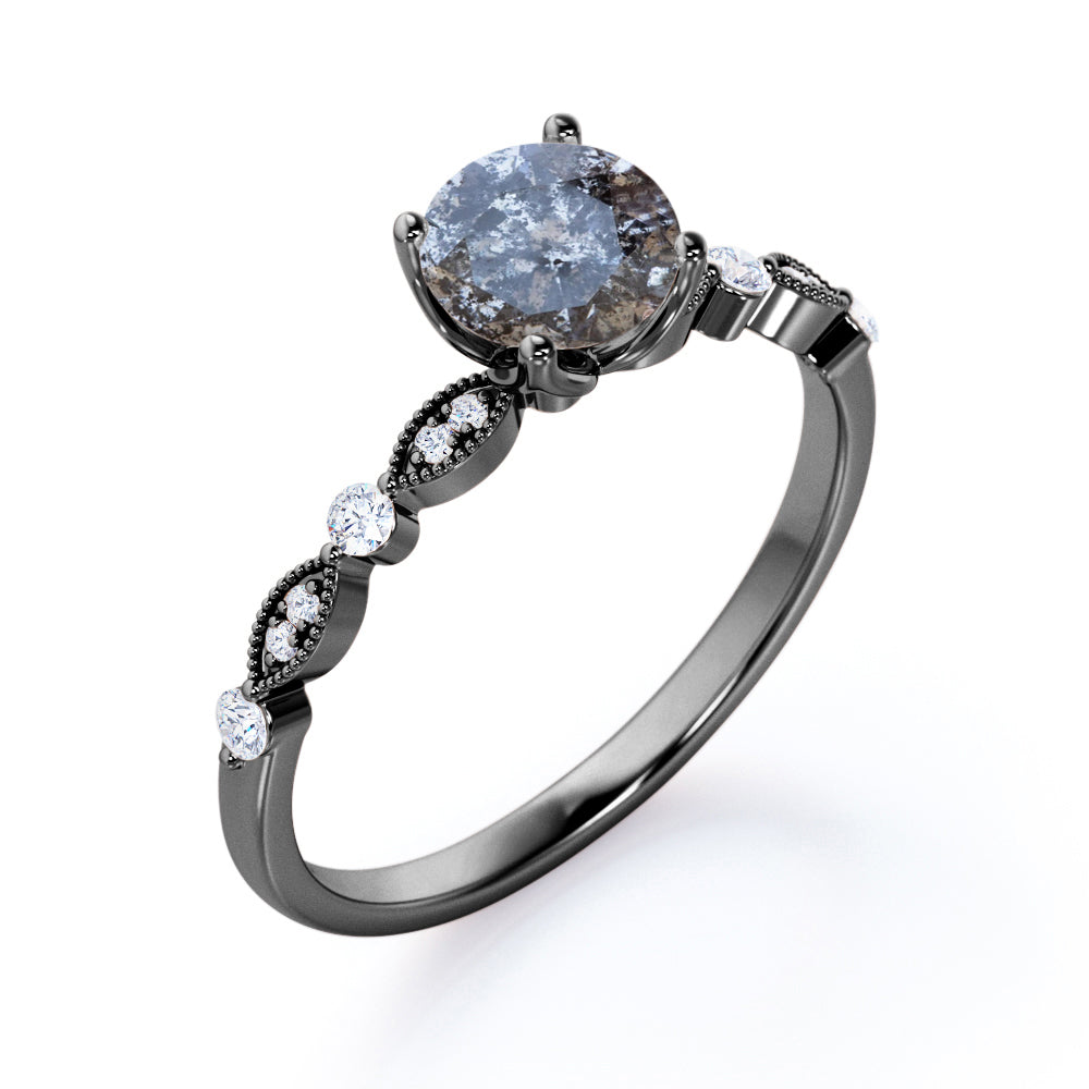 Unique 0.45 Carat Round Cut Genuine Salt and Pepper Diamond Art Deco Engagement Ring In White Gold