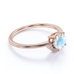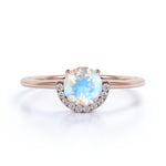Unique 1.15 Carat Round Blue Flash Moonstone and Diamond Curved Engagement Ring in Rose Gold
