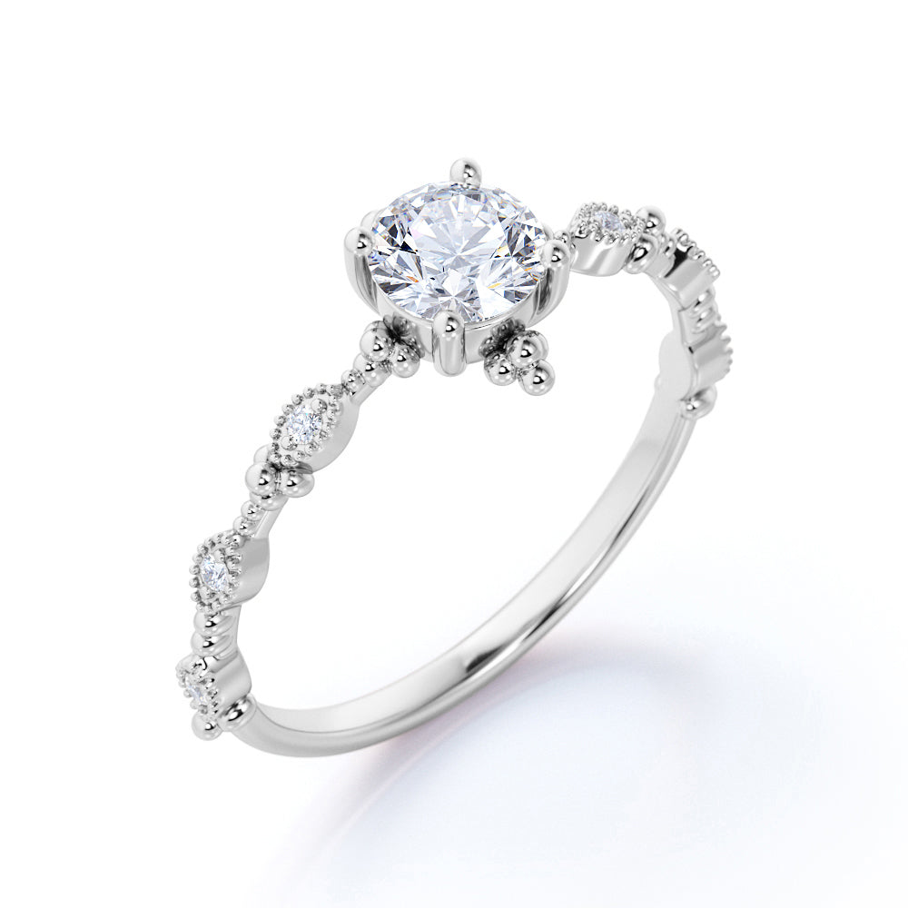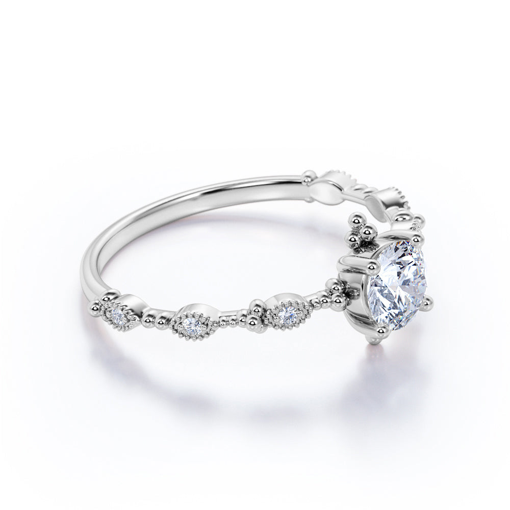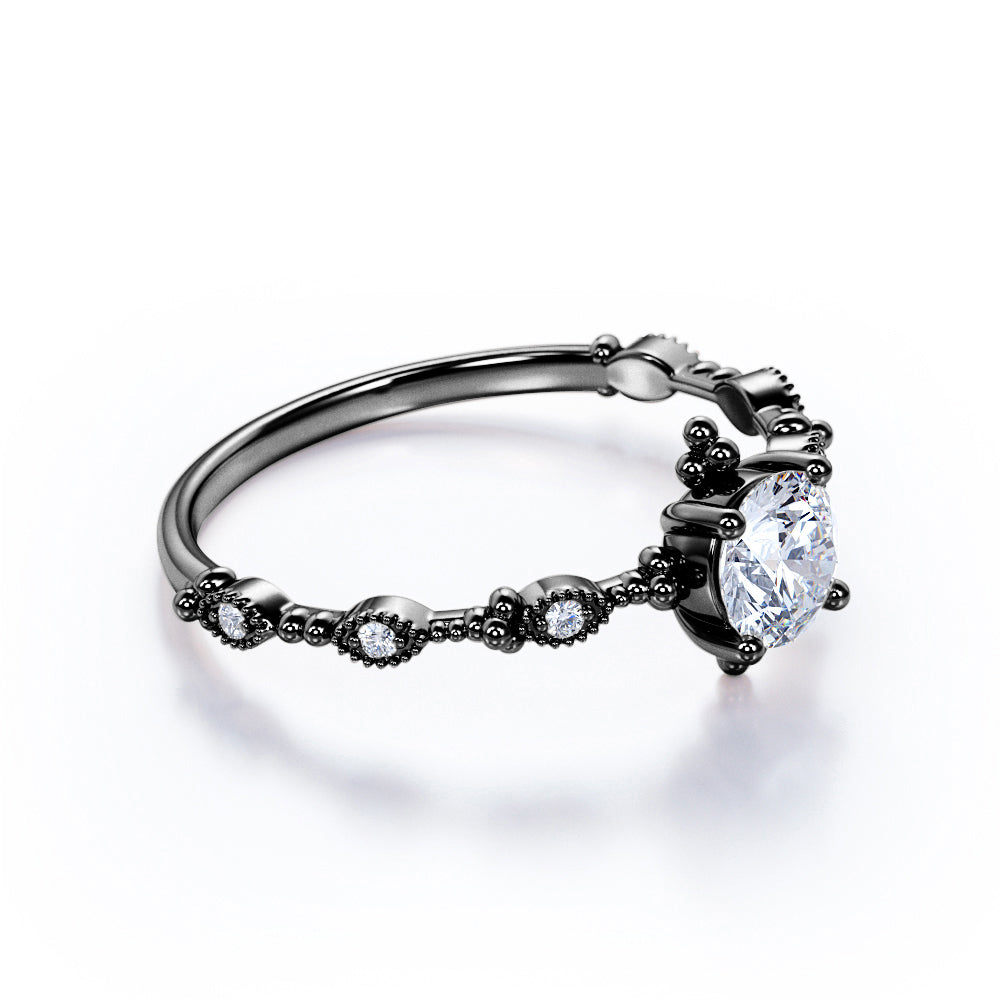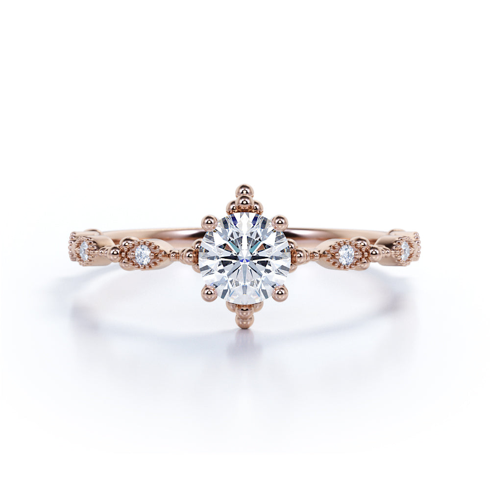 Vintage 1 Carat Round Moissanite Engagement Ring