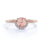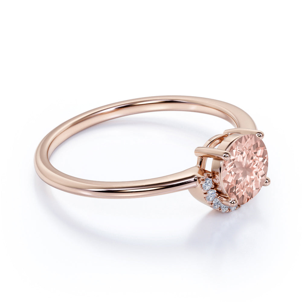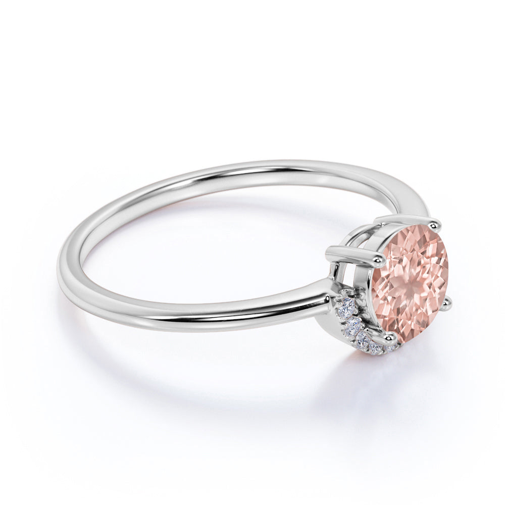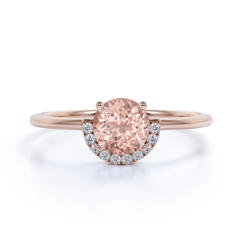 Unique 1.15 Carat Round Light Pink Morganite and Diamond Curved Engagement Ring in Rose Gold