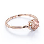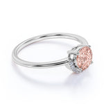 Perfect for any occasion, birthday gift, anniversary gift, promise ring or just a simple gift for your loved ones. This trendy morganite ring is so beautiful and durable despite its dainty look. This morganite ring features an approximately 1 carat round shape natural morganite, surrounded by .15 carat genuine side diamonds, for a total weight of 1.15 carats.