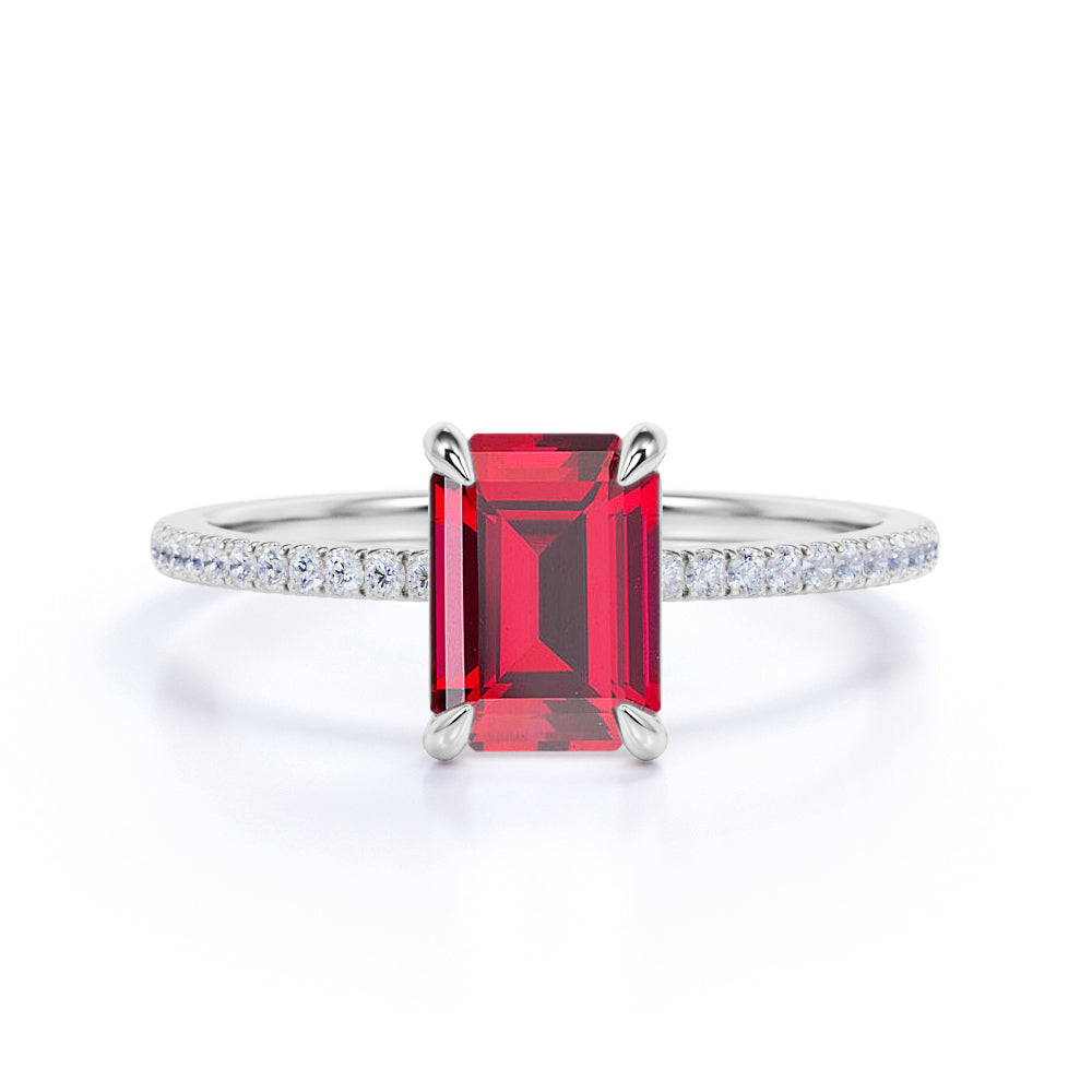 Unique 1.25 Carat Emerald Cut Natural Ruby and Moissanite Wedding Ring in 18k Gold Over Sterling Silver