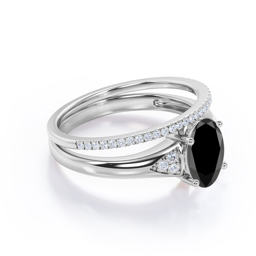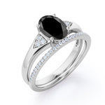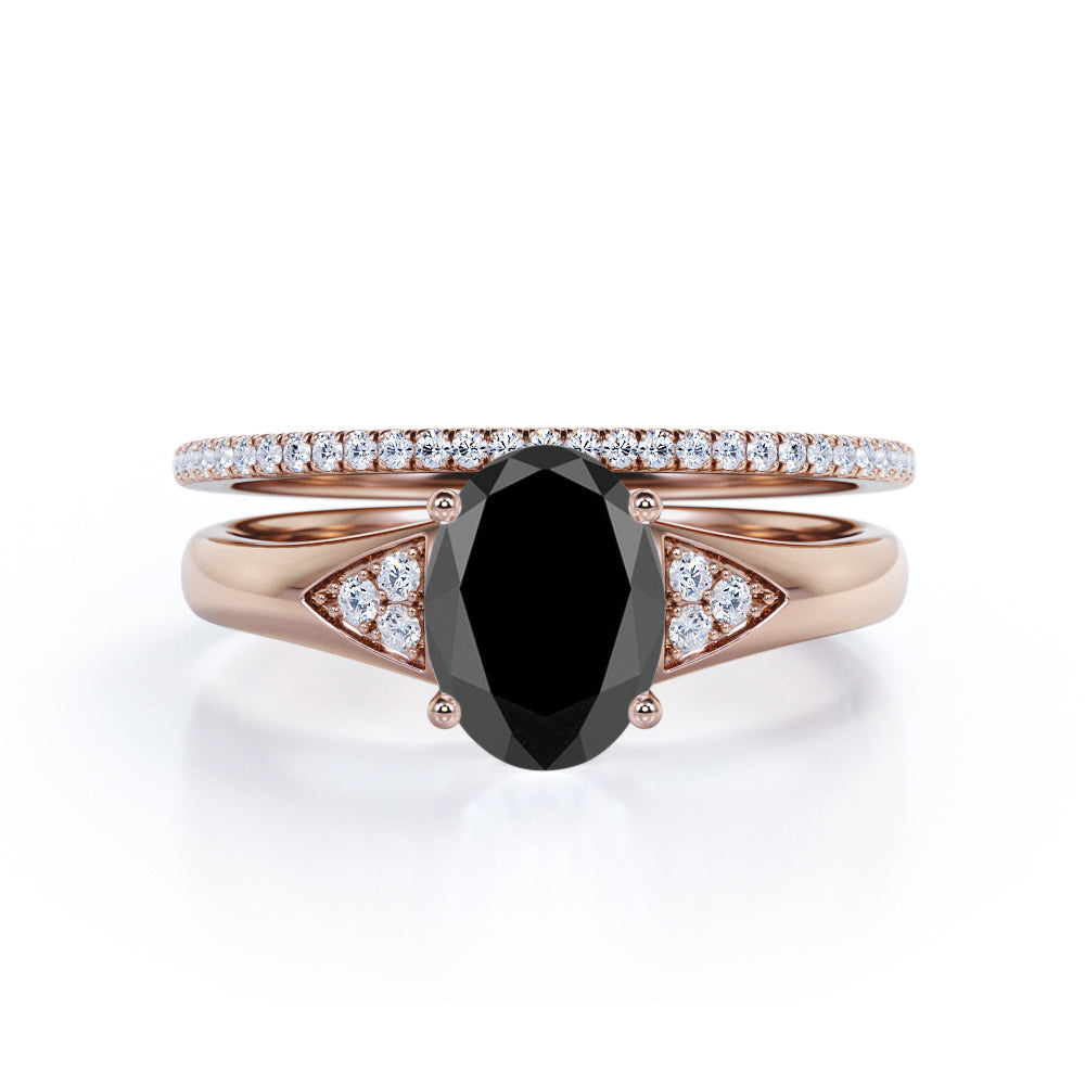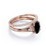 Unique 1.50 Carat Oval cut Lab Black Diamond Bridal Set with semi eternity band in Rose Gold