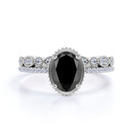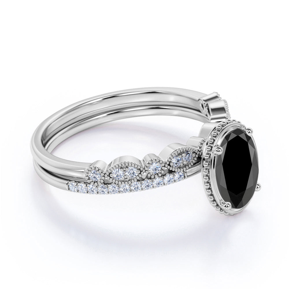 Vintage 1.50 ct Oval Lab Black Diamond Bridal Set