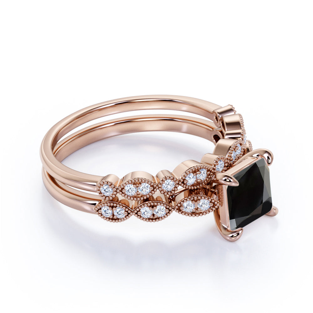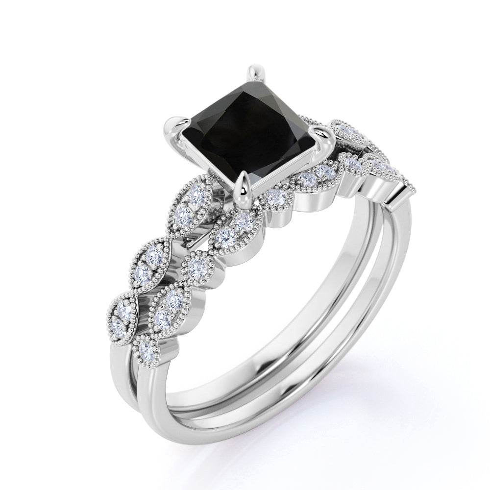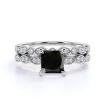 Unique 1.75 Carat Princess cut Lab Black Diamond Bridal Set with semi eternity band in White Gold