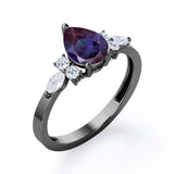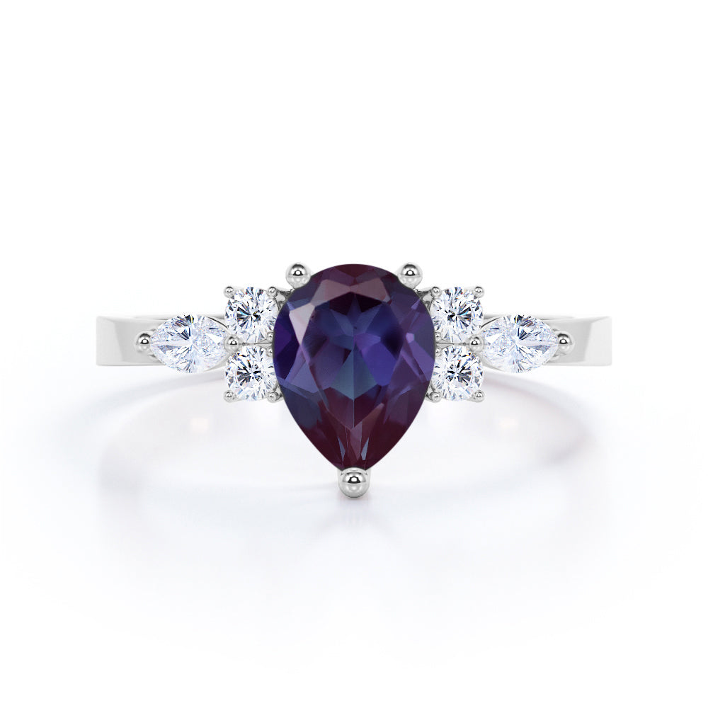 Unique 1.35 Carat Tear Drop Lab Created Alexandrite And Diamond Seven Stone Engagement Ring In White Gold