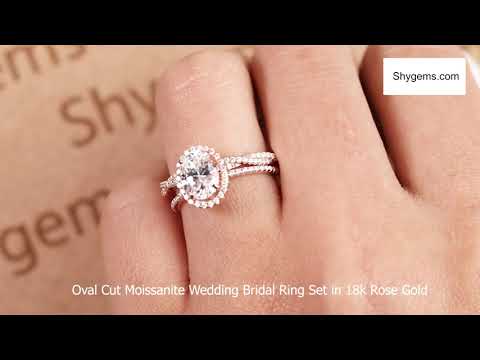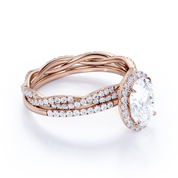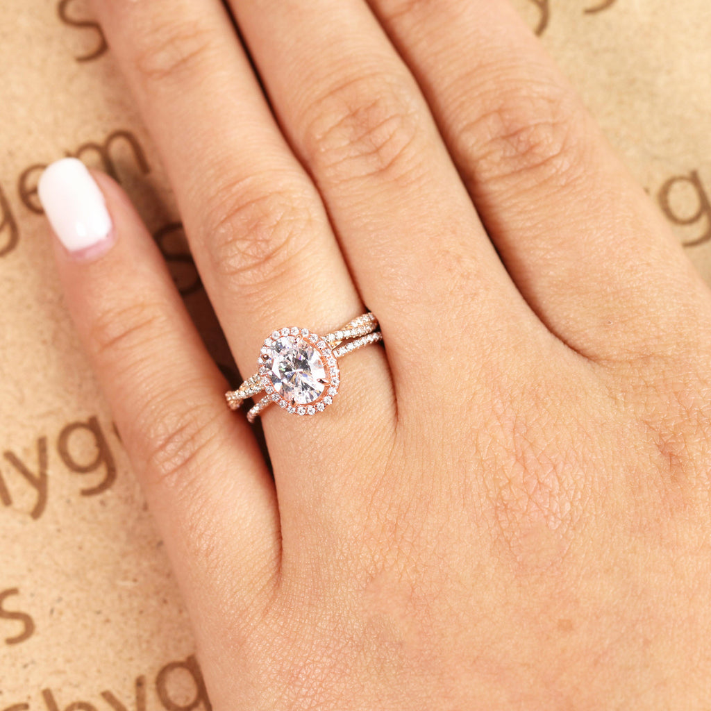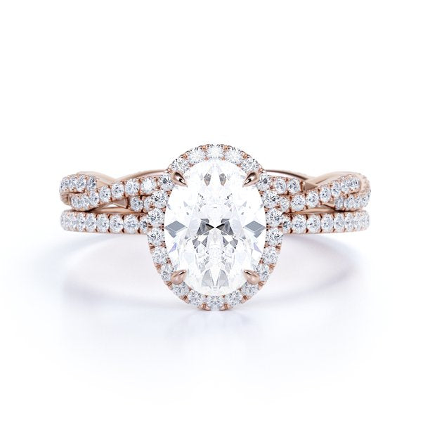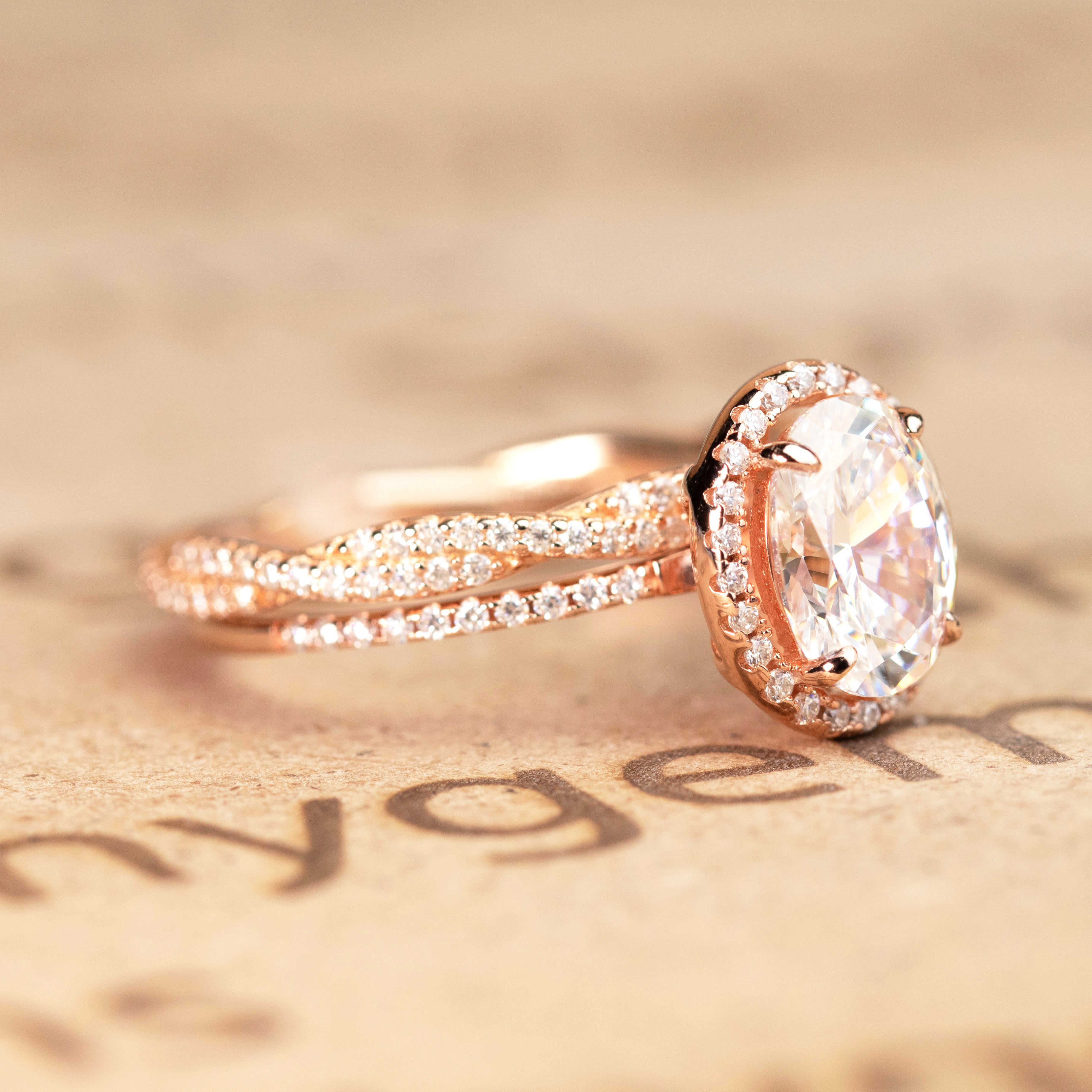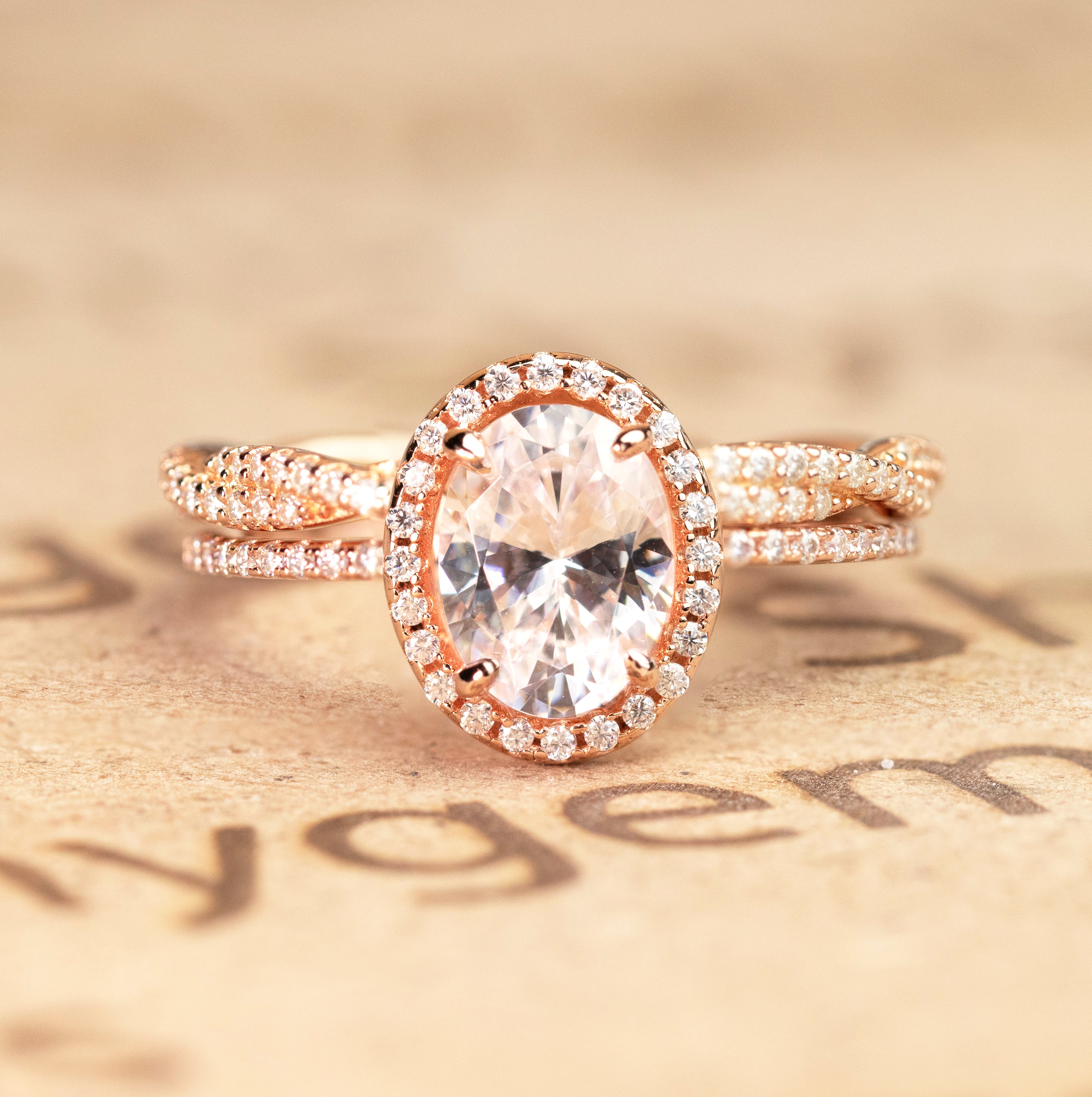Unique 1.75 Carat Oval Cut Moissanite Wedding Bridal Ring Set in 18k Rose Gold Over Silver