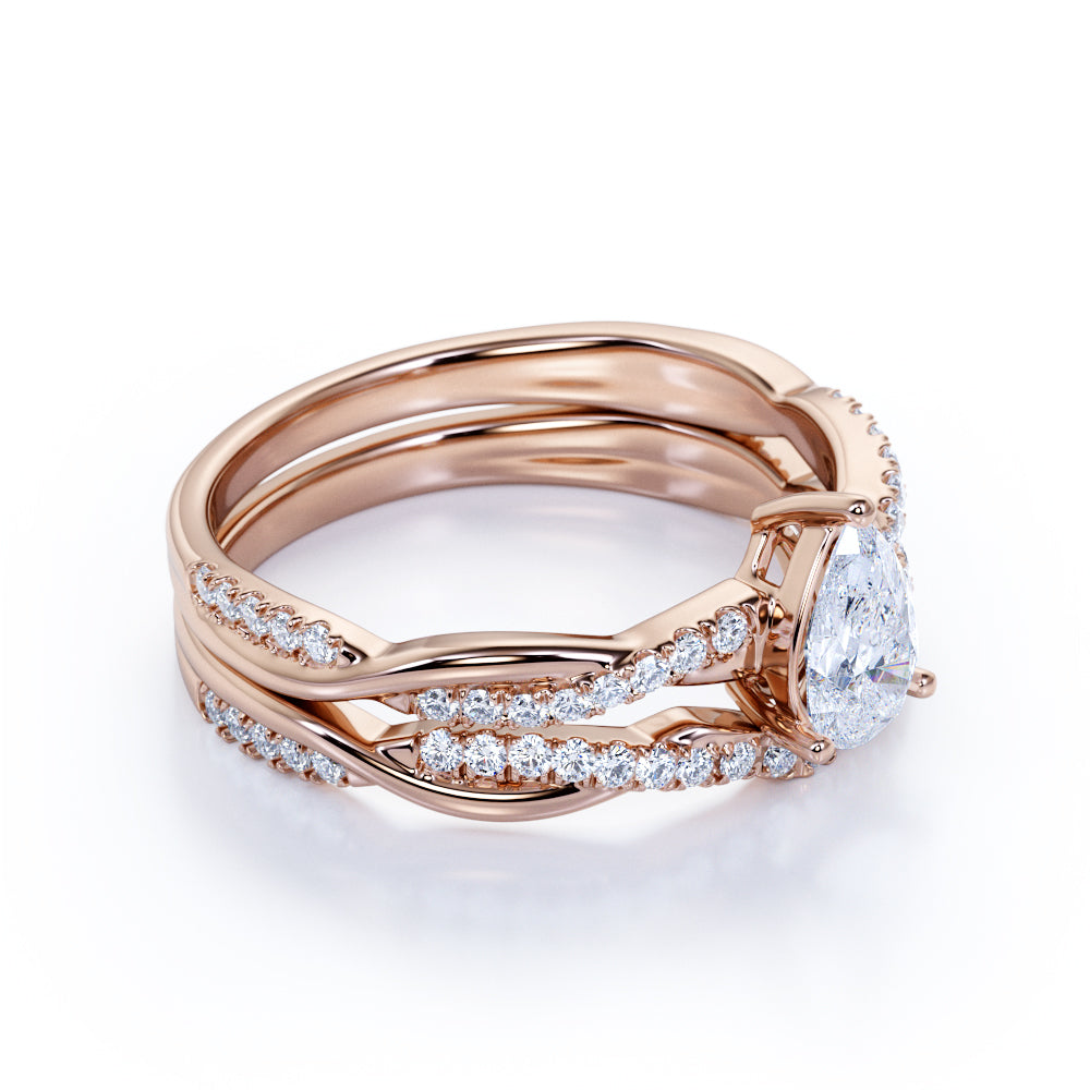 Infinity 1.25 Carat Pear Cut Moissanite Pave Wedding Ring Set