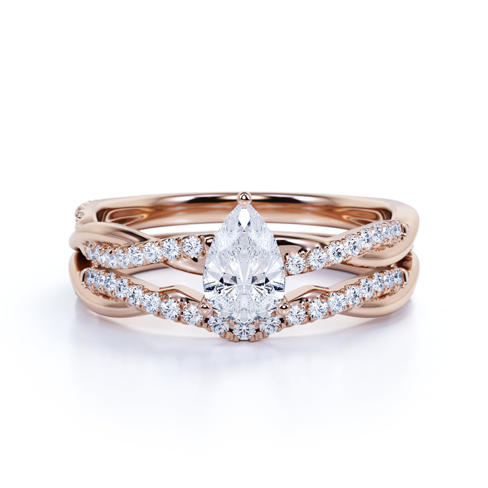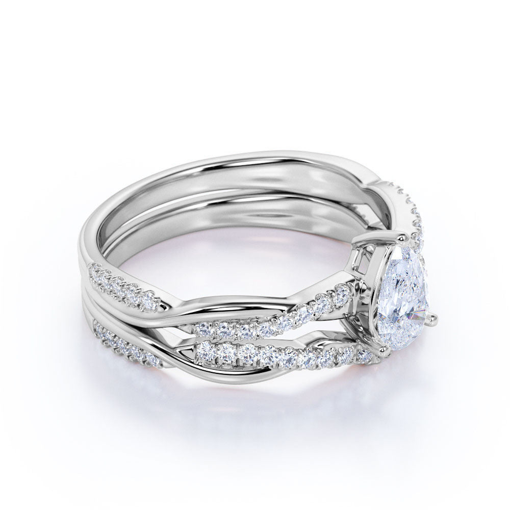 Infinity 1.25 Carat Pear Cut Moissanite Pave Wedding Ring Set