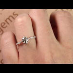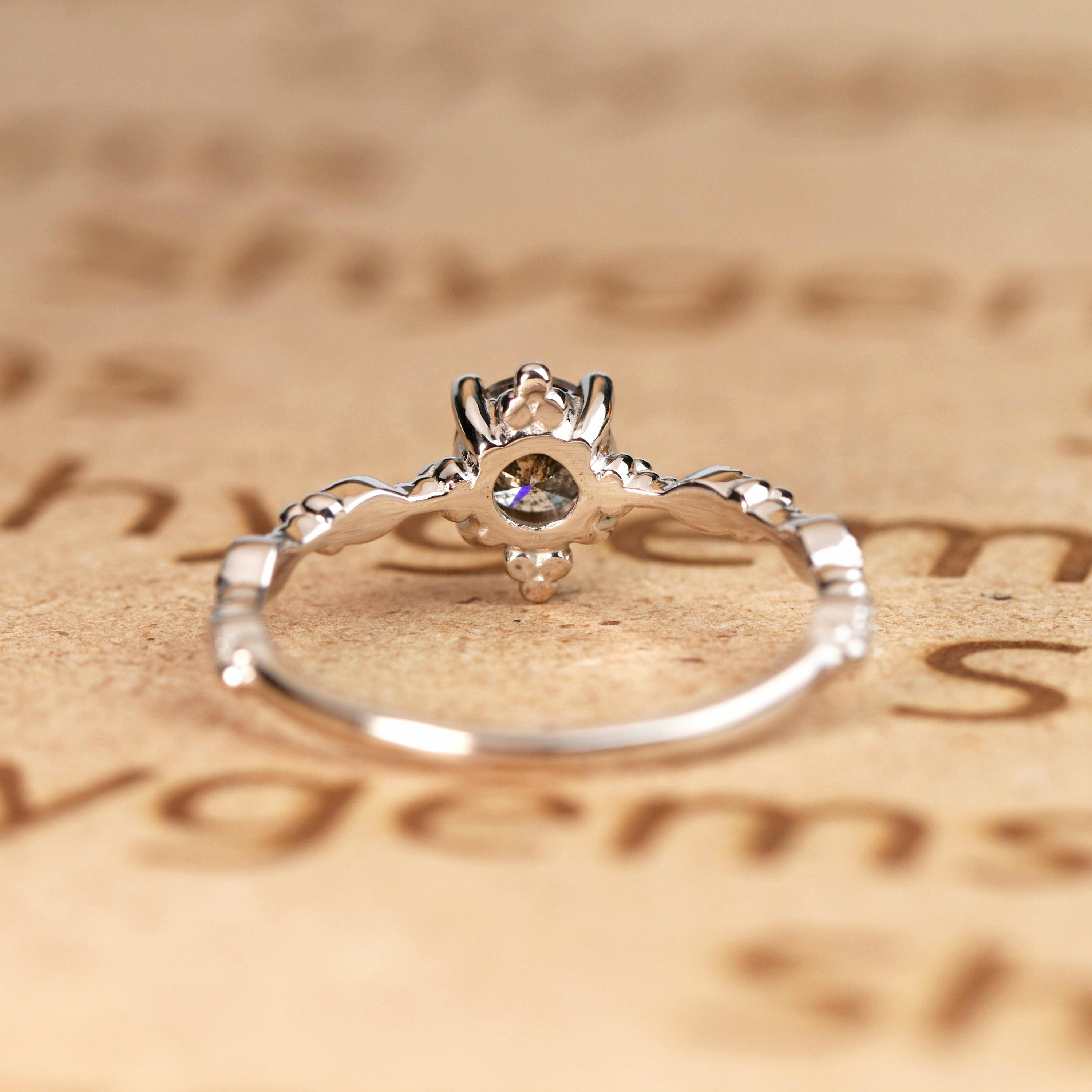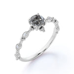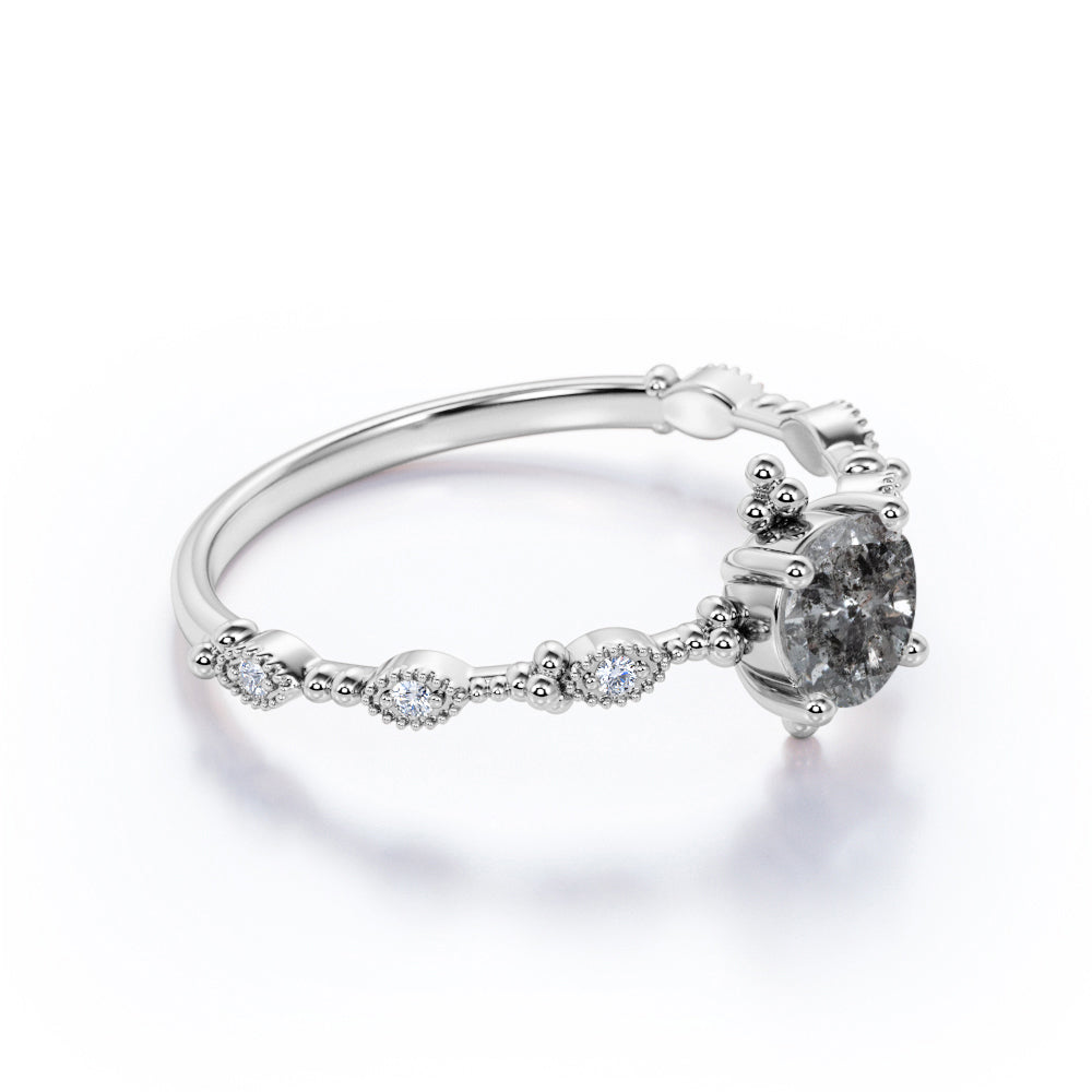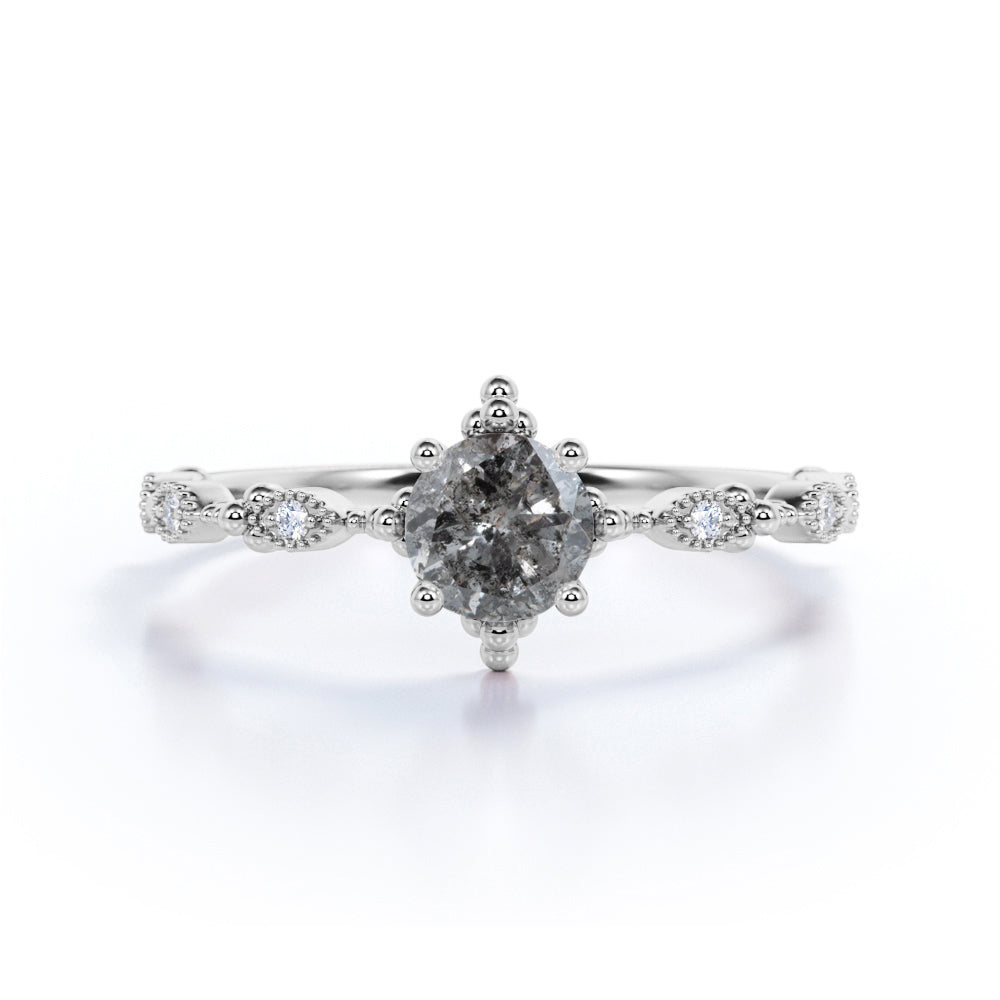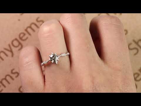 Unique .65 Carat Round Cut Natural Salt and Pepper Diamond Dainty Modern Engagement Ring in 18k White Gold over Silver