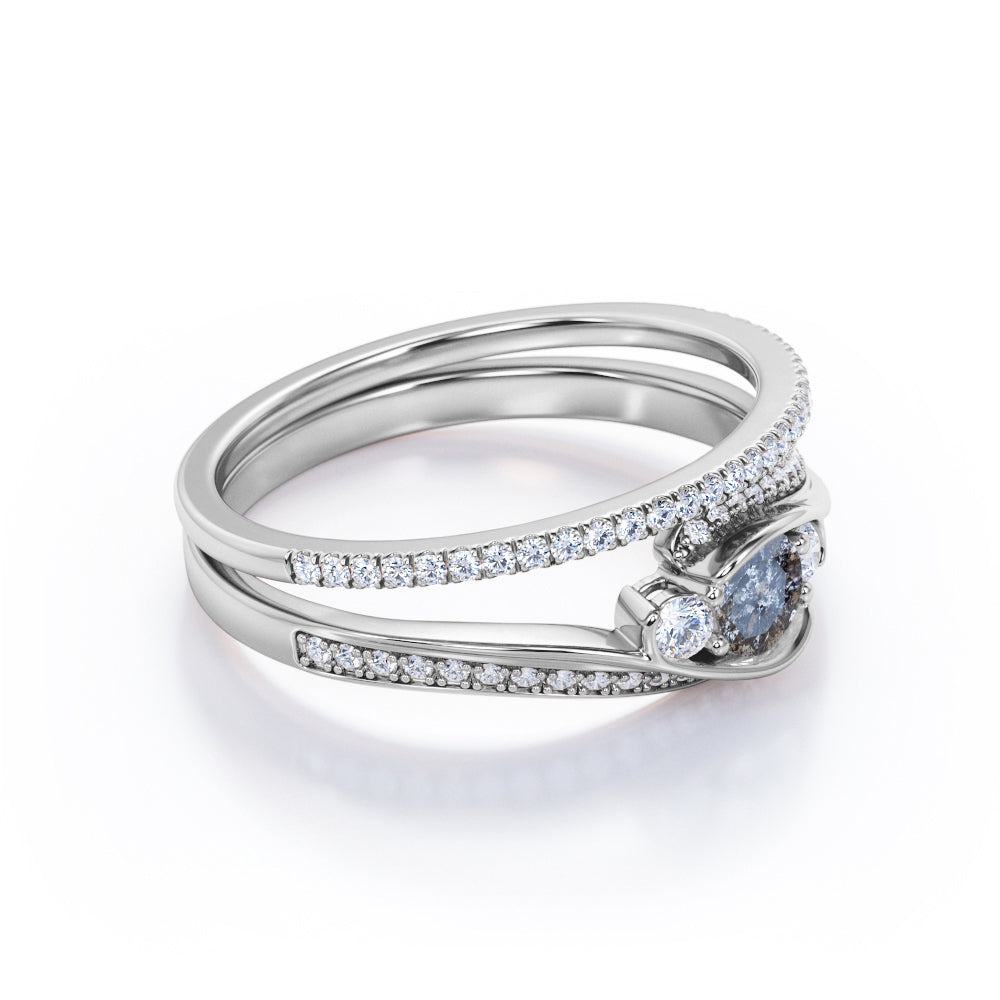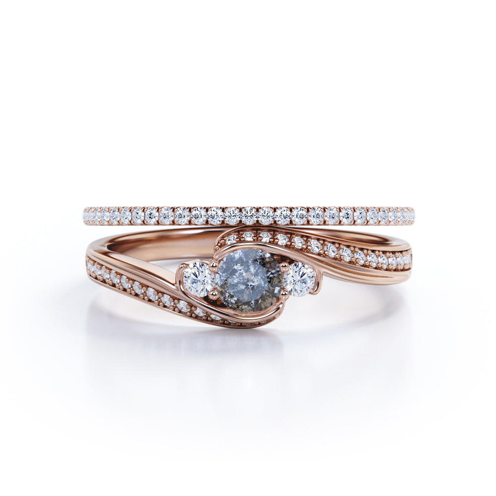 1.25 Ct Round Salt and Pepper Diamond Bypass Wedding Ring Set