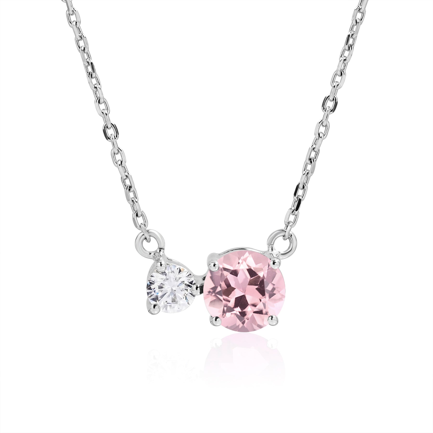 Celebrate your birthday with the Unique Double Round Cubic Zirconia Pink Tourmaline October Birthstone Pendant Necklace in White Gold Plating over Sterling Silver. This exquisite piece features a stunning double round cubic zirconia which are clear and colored cubic zirconia. Set in luxurious white gold plating over sterling silver, this elegant pendant is perfect for adding a touch of sophistication to any outfit. The pendant necklace combines the timeless allure of cubic zirconia, making it a standout piece in any jewelry collection. The white gold plated necklace enhances the brilliance of the gemstones, offering a refined look suitable for both everyday wear and special occasions. As a sterling silver jewelry piece, it ensures durability and lasting shine. Ideal as a birthstone jewelry gift, this unique birthstone pendant necklace is a thoughtful and meaningful present for loved ones. Its elegant design and premium materials make it a versatile accessory that complements any style.|Stone Type: Cubic Zirconia|Metal Type: Sterling Silver|Birthstone Month: October|Manufacturer: JeenMata|Condition: New||
