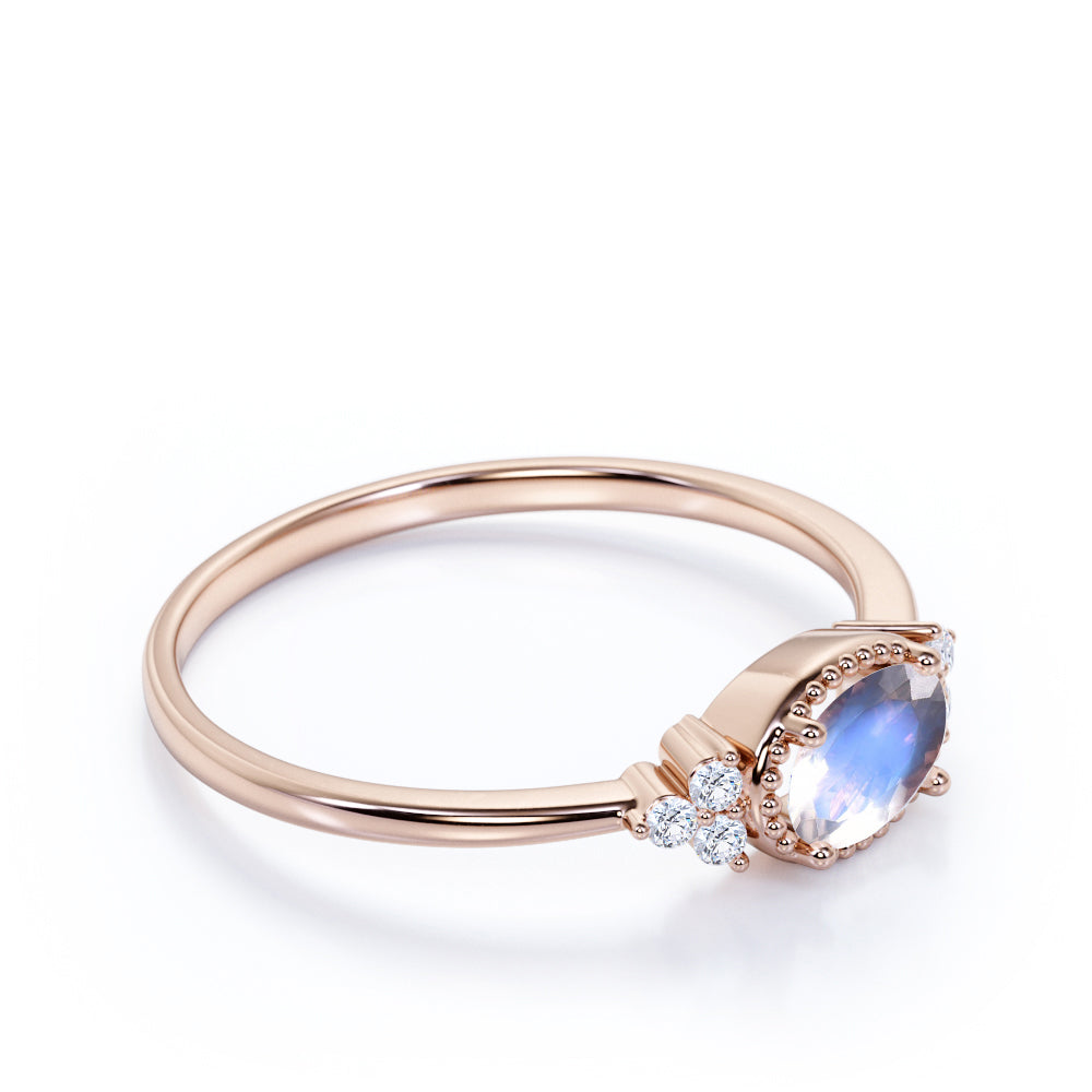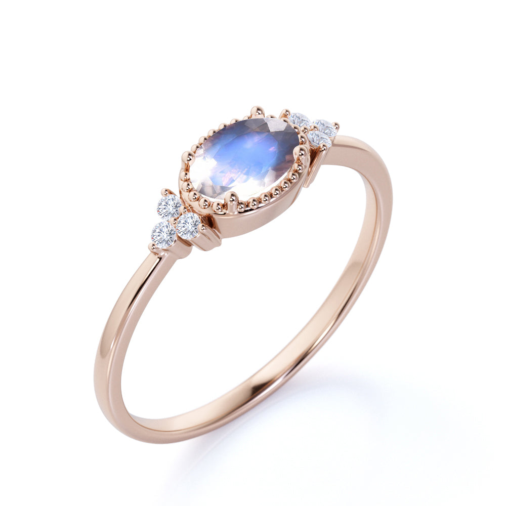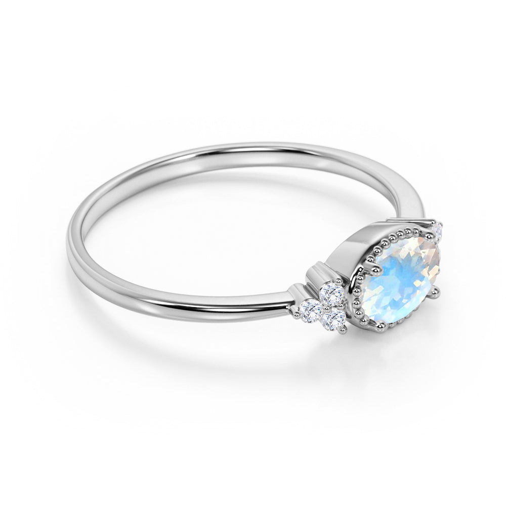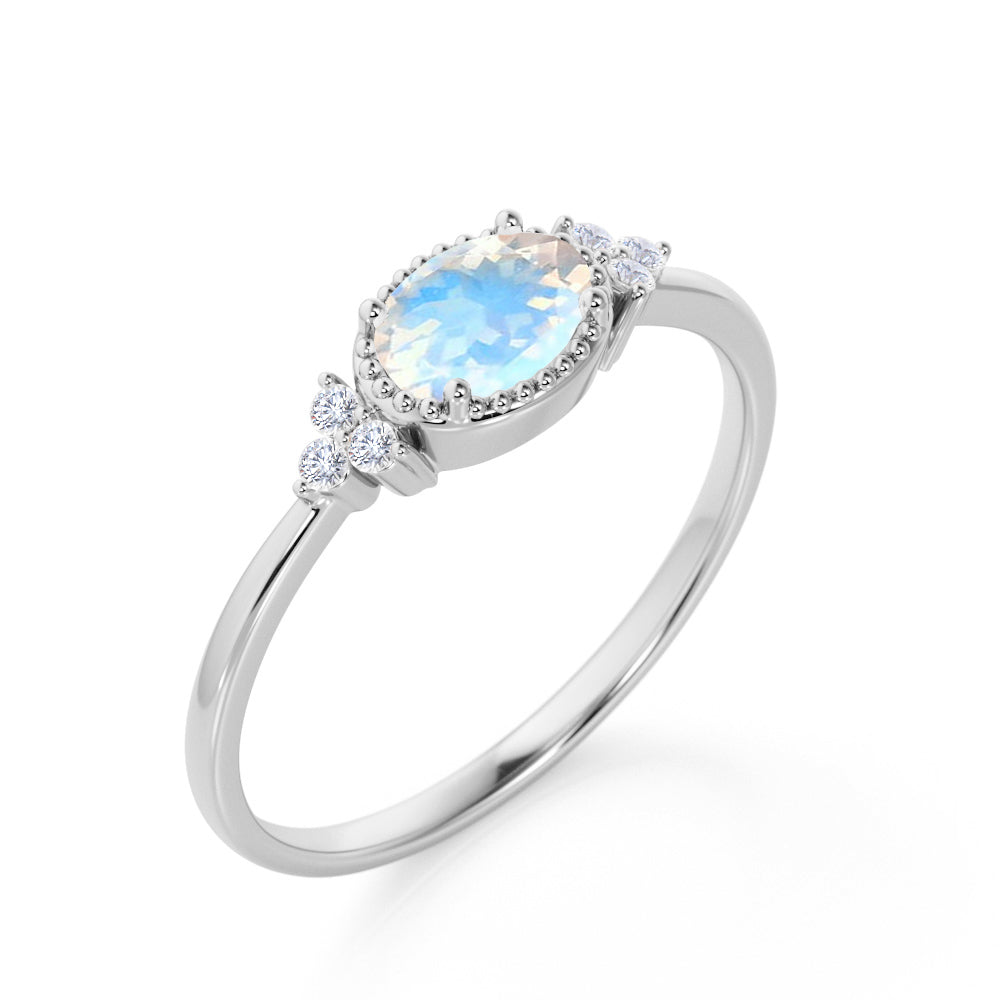 • Lastly, this moonstone engagement ring can be a great addition to your personalized jewelry box, we can also customized these following ring designs, a tumbled moonstone ring, faceted ring, cabochon ring, leaf band, rhombus ring or a ranch ring style.