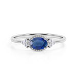 Unique East West 1.40 Carat Oval Cut Dark Blue Sapphire and 7 Stone Diamond Engagement Ring in White Gold
