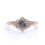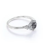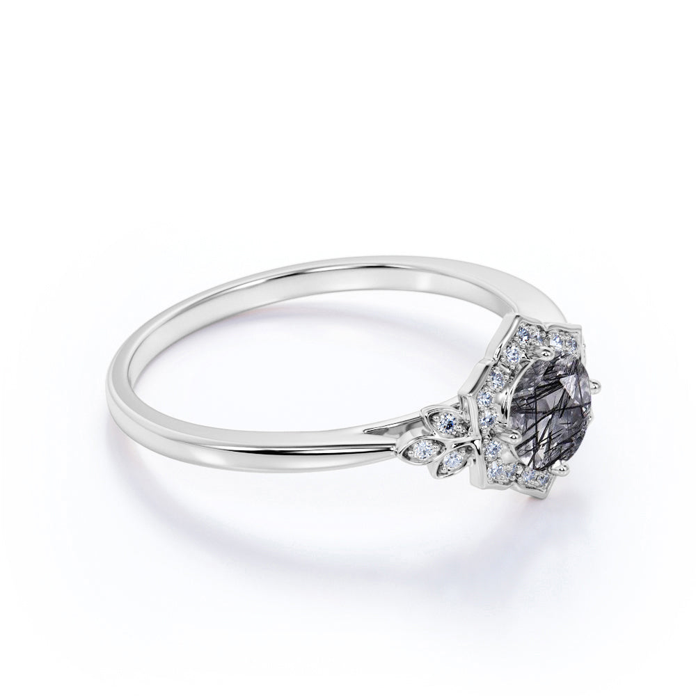Floral 1.25 ct Round Black Rutilated Quartz Bezel Engagement Ring