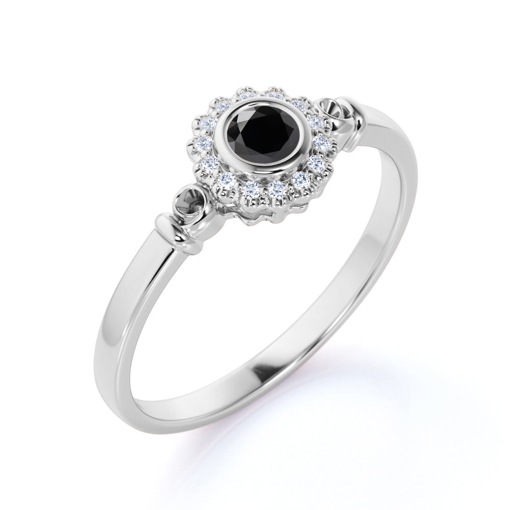 †¢ Lastly, this black diamond engagement ring can be a great addition to your personalized jewelry box, we can also customized these following ring designs, a snow queen dainty ring, dainty flower ring, pink diamond ring, dainty engraved band, dainty rainbow ring or a dainty wave ring that she will truly adore.