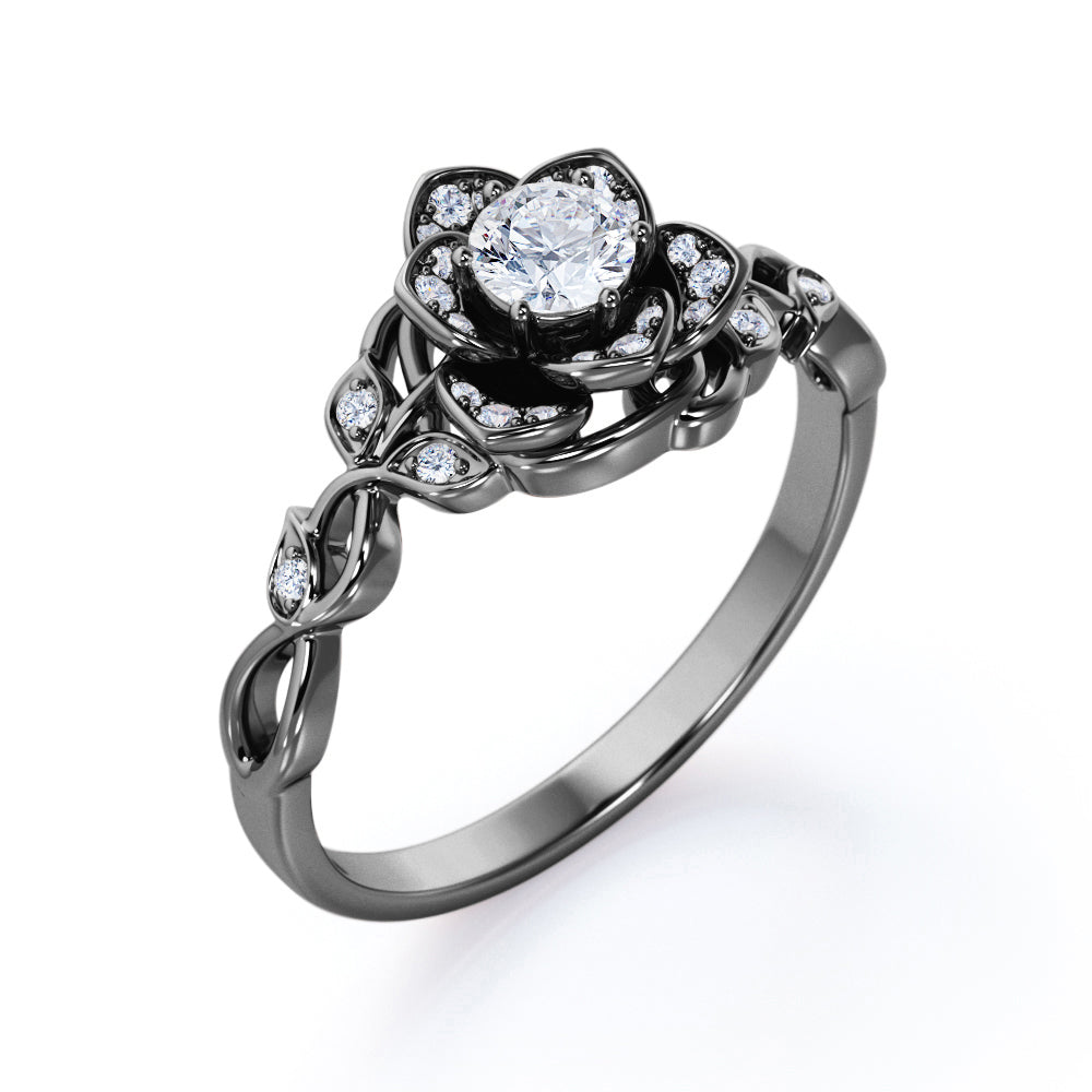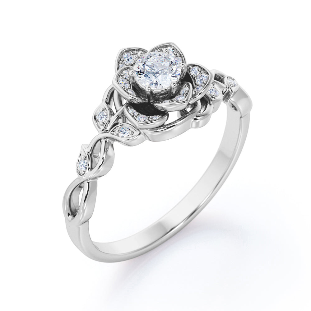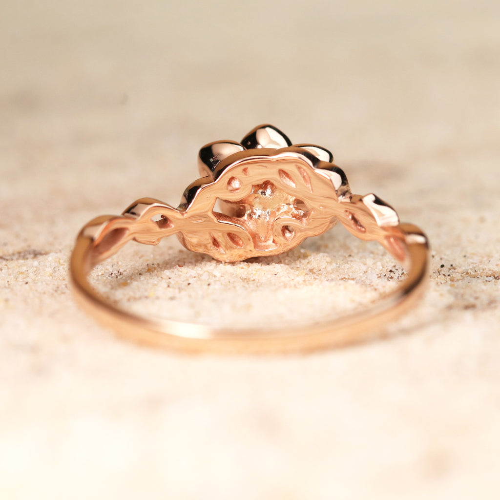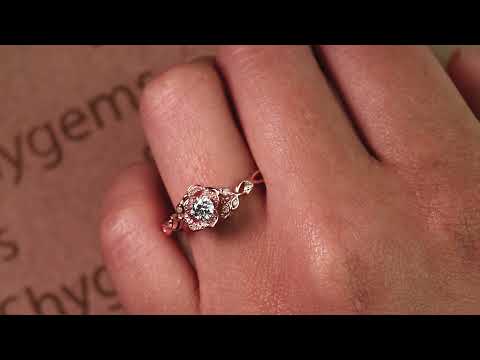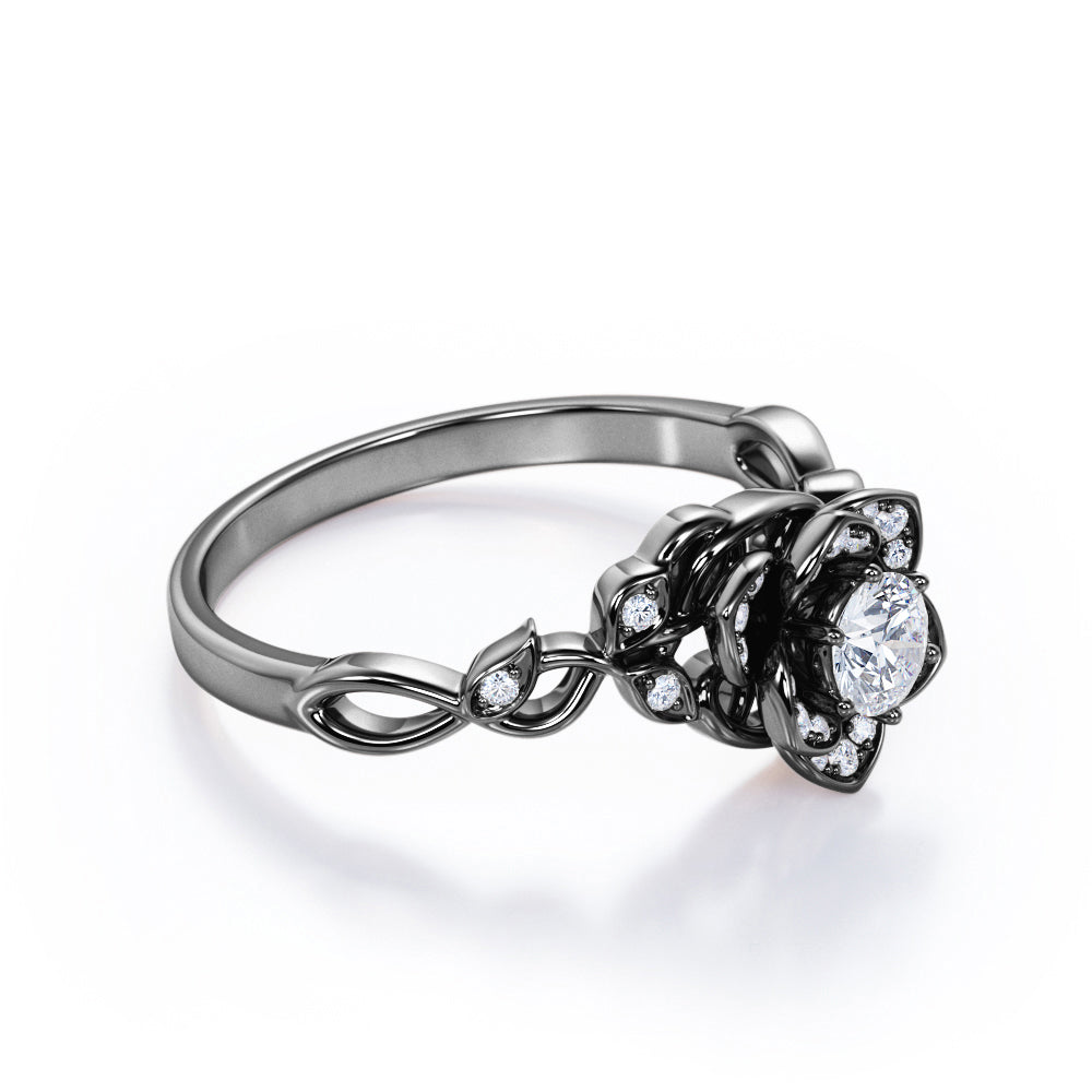 Flower Rose Cluster 0.5 Carat Round Moissanite and Diamond Bezel Set Engagement Ring in Rose Gold