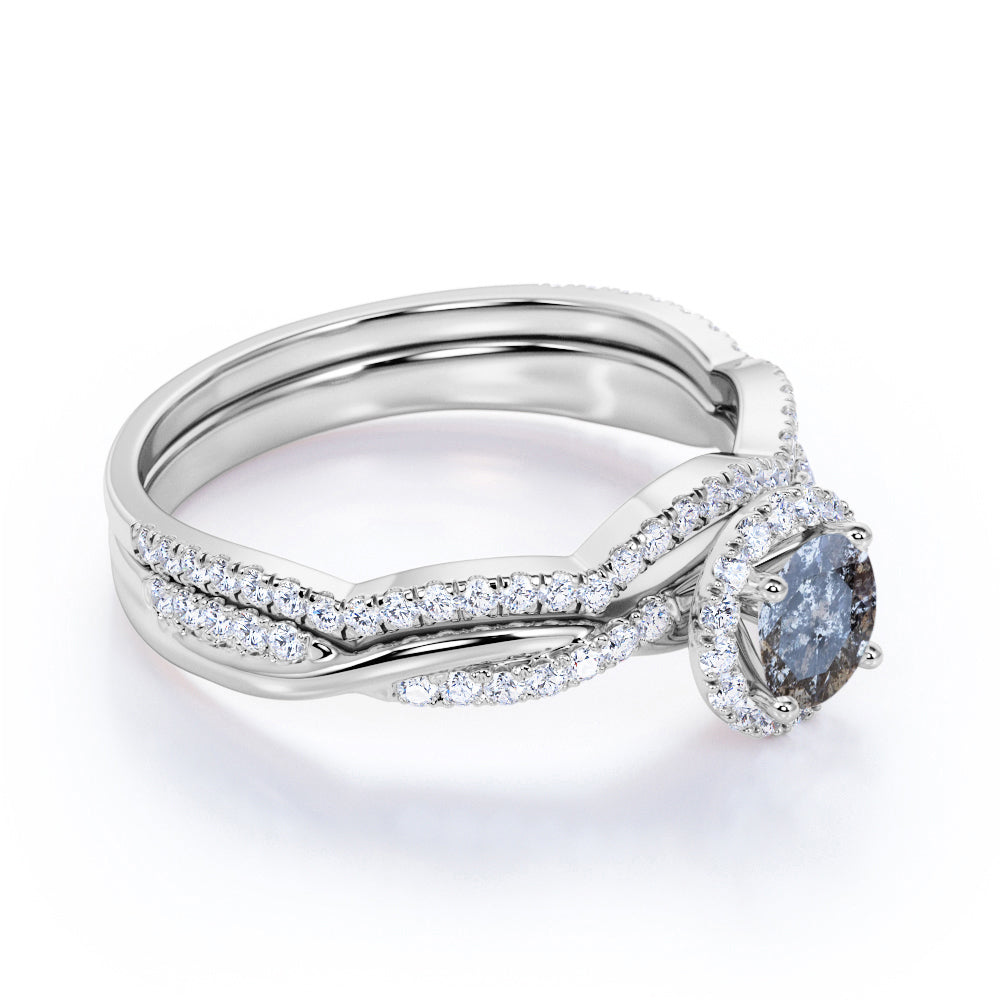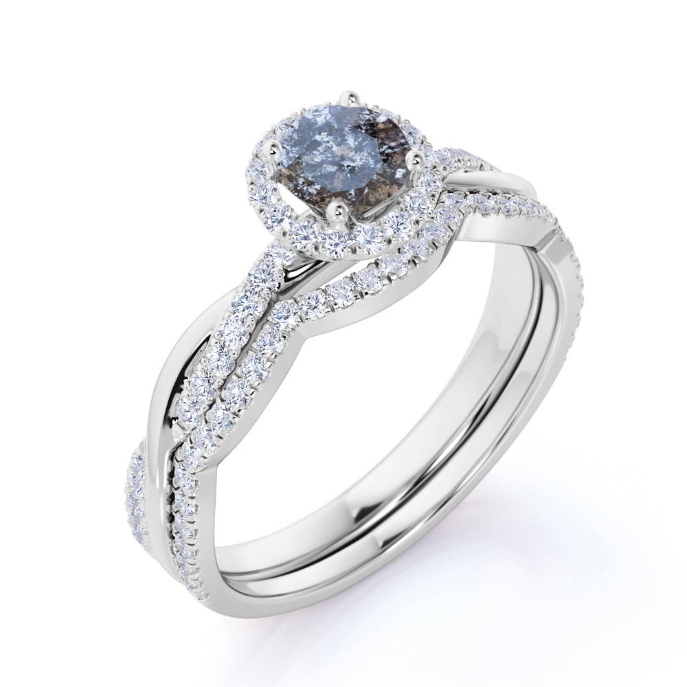 Halo 1.25 Ct Round Salt and Pepper Diamond Wedding Ring Set