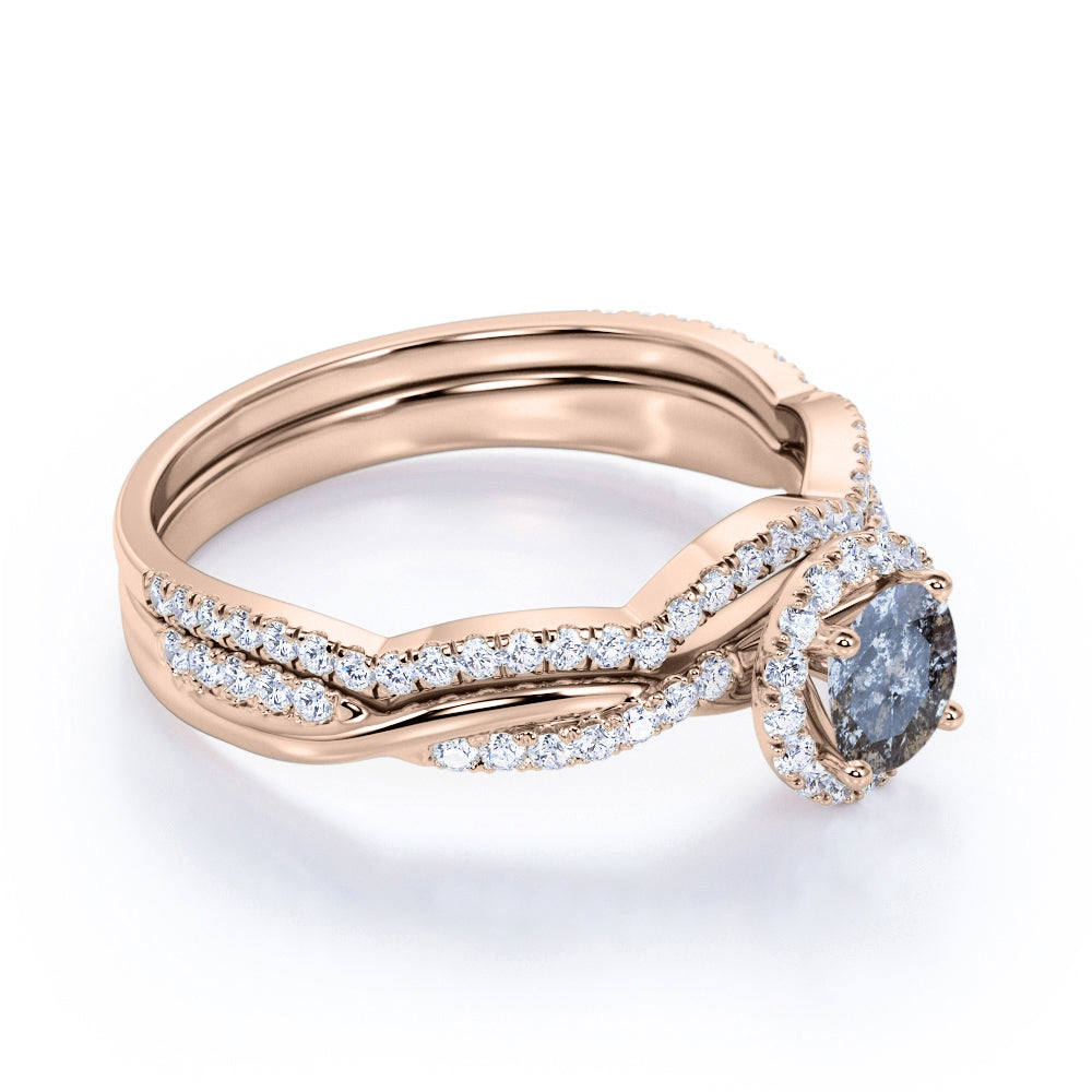Halo 1.25 Ct Round Salt and Pepper Diamond Wedding Ring Set