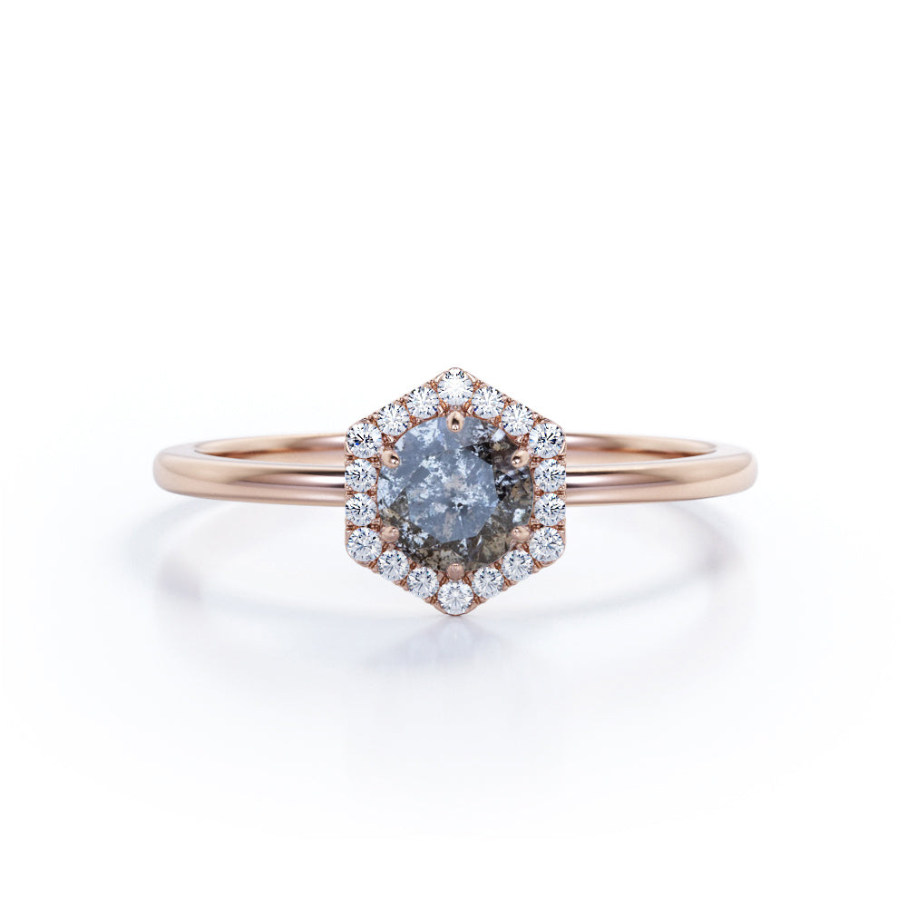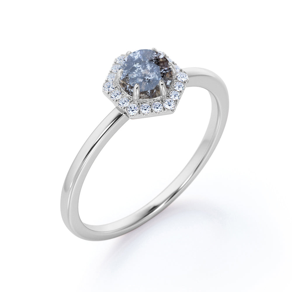 Hexagon 1 Ct Round Salt and Pepper Diamond Engagement Ring