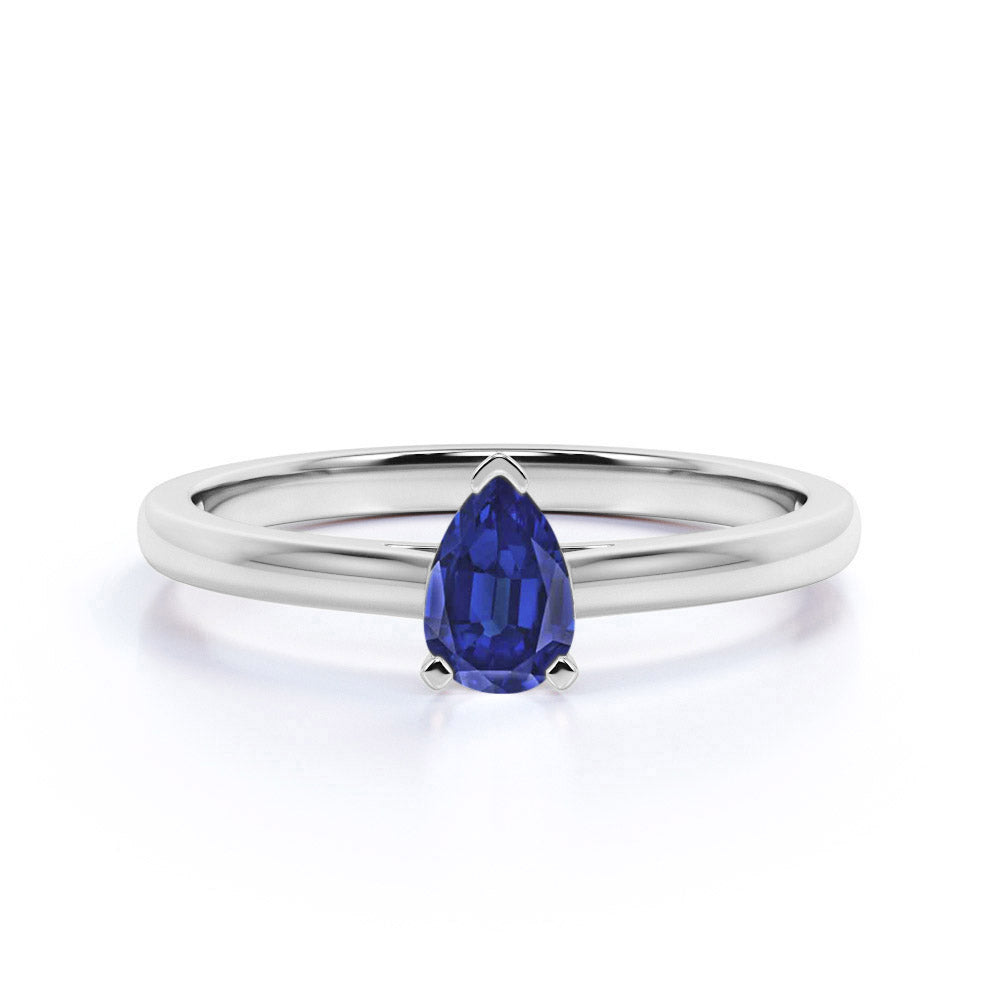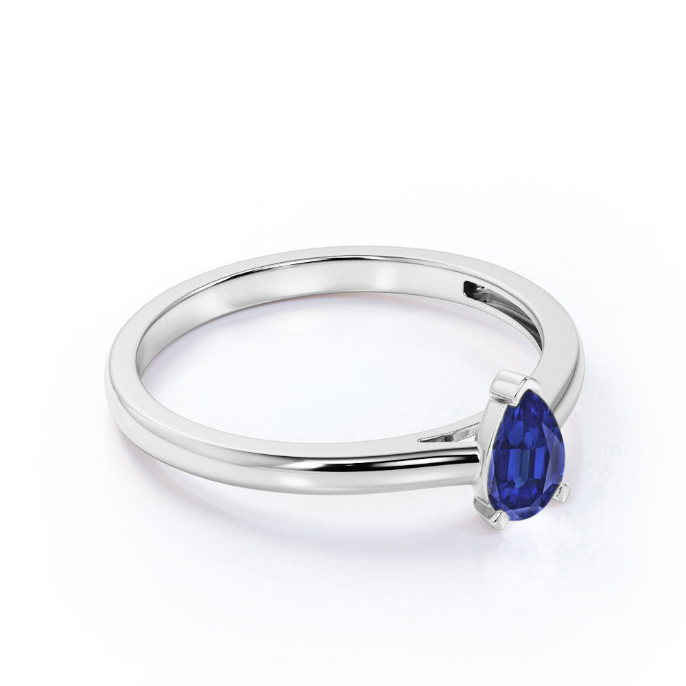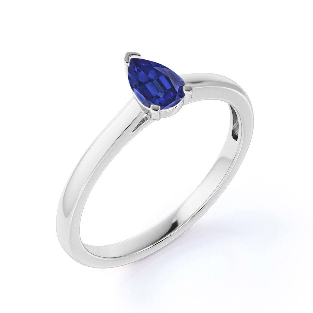 This is a classic 1.25 Carat Pear Cut Sapphire Engagement Ring in White Gold. The minimalist prong solitaire style engagement ring features 1.25 carat oval cut sapphire in the center. The sapphire engagement ring can be made in either Rose, White or Yellow Gold, and can be customized to your choice of 10k, 14k or 18k Gold. As always, the order comes with jewelry certificate, 6 month limited warranty and 30 days full refund policy. We also guarantee that once you placed your order, we will make and deliver it to you within 5 business days.